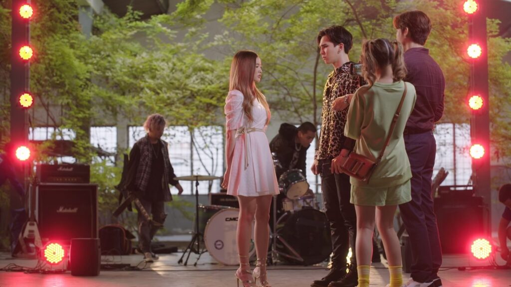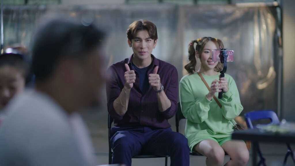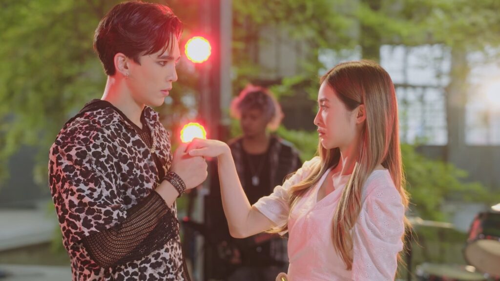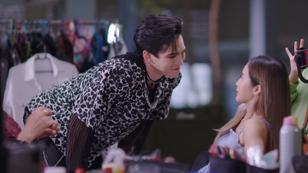 จากนั้นก็ขึ้นไปถ่ายเอ็มวีชั้นสอง ซึ่งต้องเซ็ทเป็นฉากที่ จิมมี่ กำลังร้องเพลงร็อกอย่างเมามันส์ จากนั้นก็ให้ สาวบี มายืนใกล้ๆ แบบนิ่งๆ หลังผู้กำกับฯ ในเอ็มวีสั่งคัท จิมมี่ ก็ได้ทีมงานดูแลเป็นอย่างดี ซึ่งหนึ่งในทีมงานนั้นก็หน้าคุ้นเคย โดยเฉพาะสาวที่กำลังบีบนวด อุ๊ยส์...คุณแนท ทักษญา ผู้จัดฯ ซีรีส์เรื่องนี้เข้าร่วมเฟรมด้วย