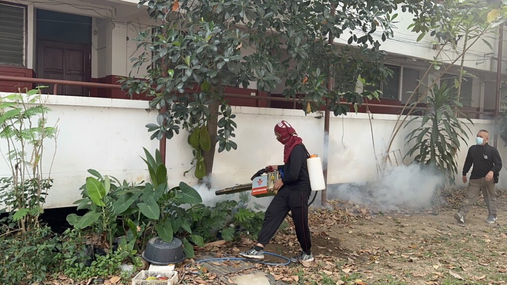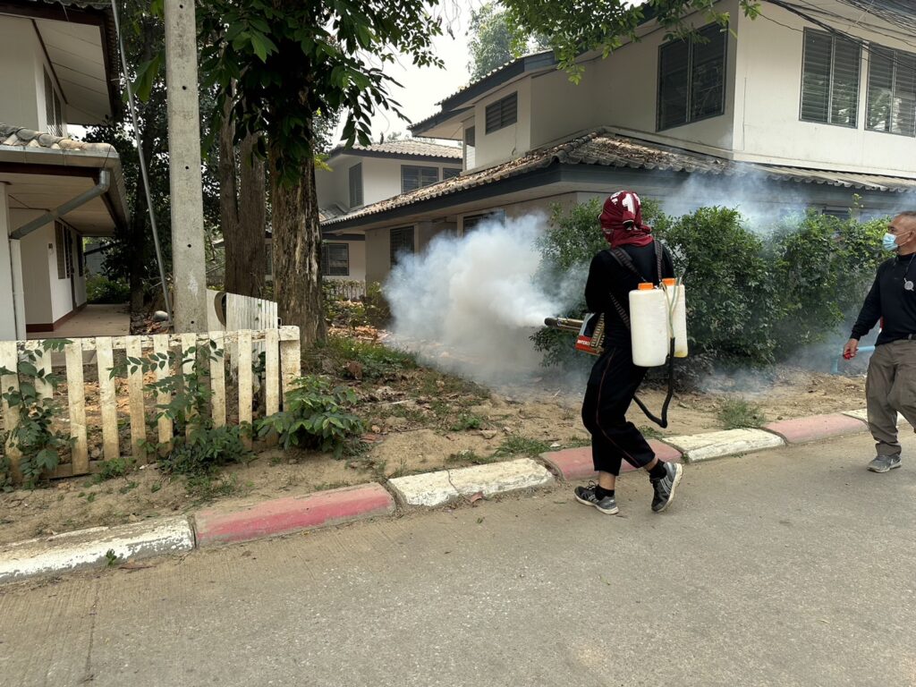 ด้วยความห่วงใย พล.ต.ท.ปิยะ ต๊ะวิชัย ผบช.ภ.5 พร้อมด้วย พ.ต.อ.ปรัชญา ทิศลา ผกก.สภ.จอมทอง , พ.ต.ท.ชุวาพล ชัยสาร สว.อก.ฯ และเจ้าหน้าที่ตำรวจจิตอาสาตำรวจภูธรภาค 5 นำเครื่องพ่นหมอกควันกำจัดยุง ดำเนินการพ่นหมอกควันบริเวณบ้านพักและแฟลตข้าราชการตำรวจภูธรภาค 5 เพื่อเป็นการป้องกันการแพร่ระบาดของโรคไข้เลือดออก และโรคที่เกิดจากยุง รวมถึงสัตว์มีพิษต่างๆให้แก่ข้าราชการตำรวจ ที่พักอาศัยอยู่ที่แฟลต อาคารบ้านพัก ตำรวจภูธร ภาค 5