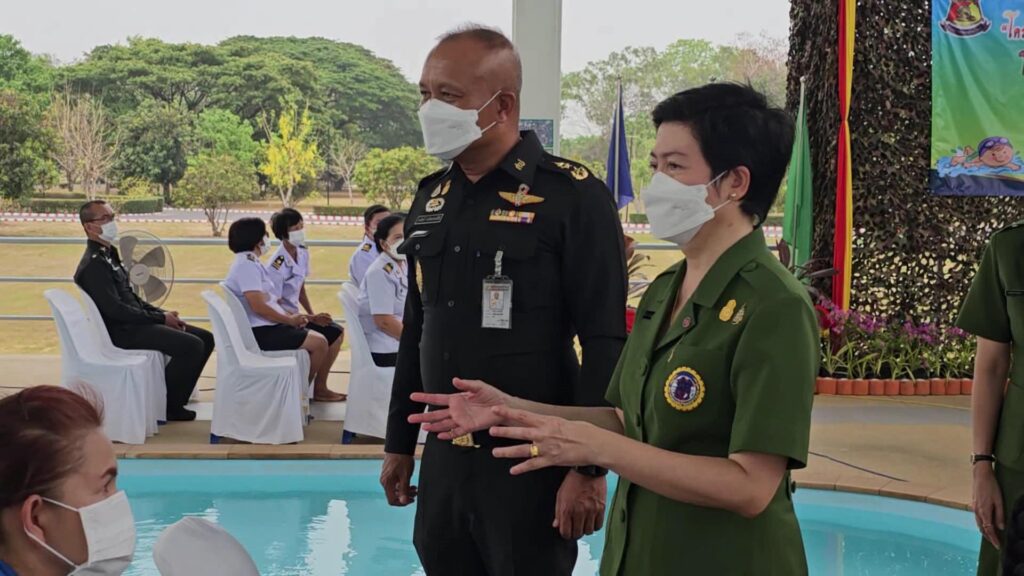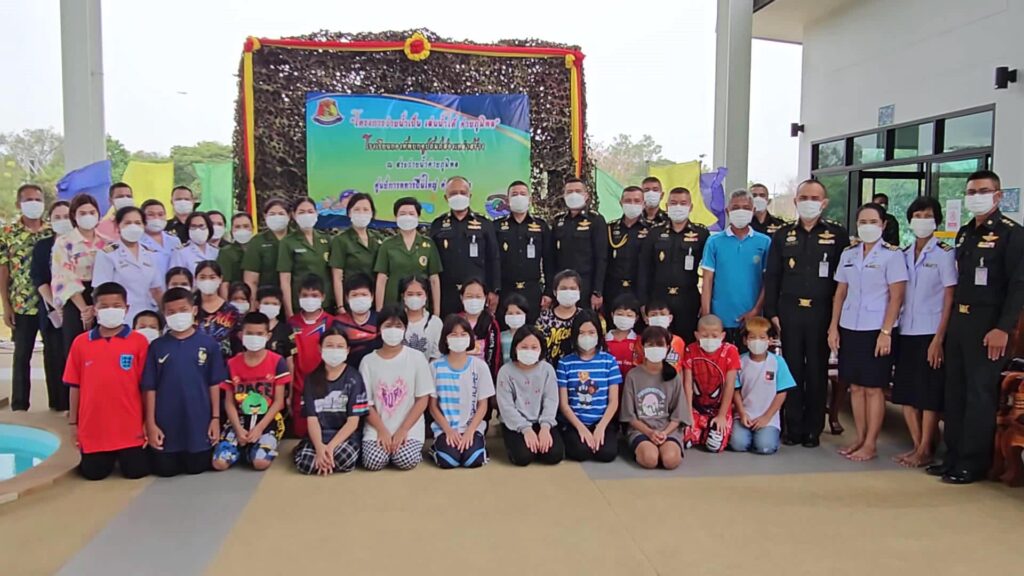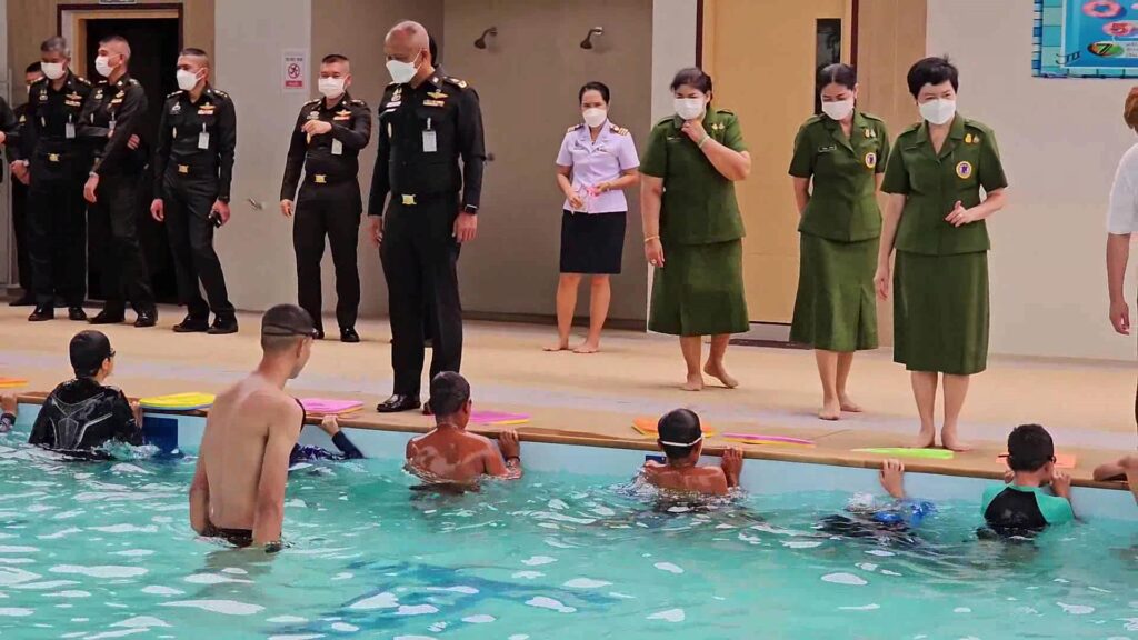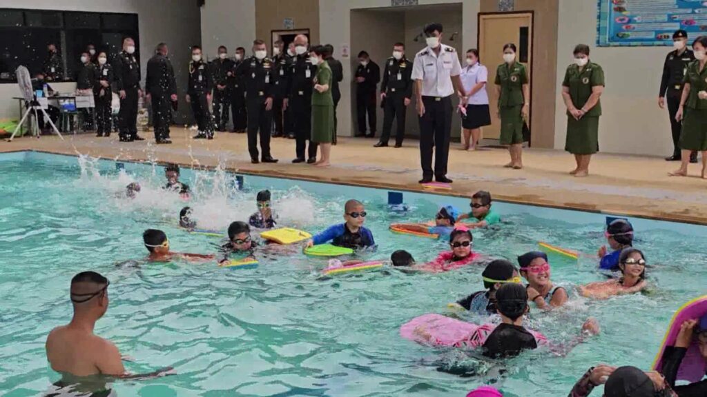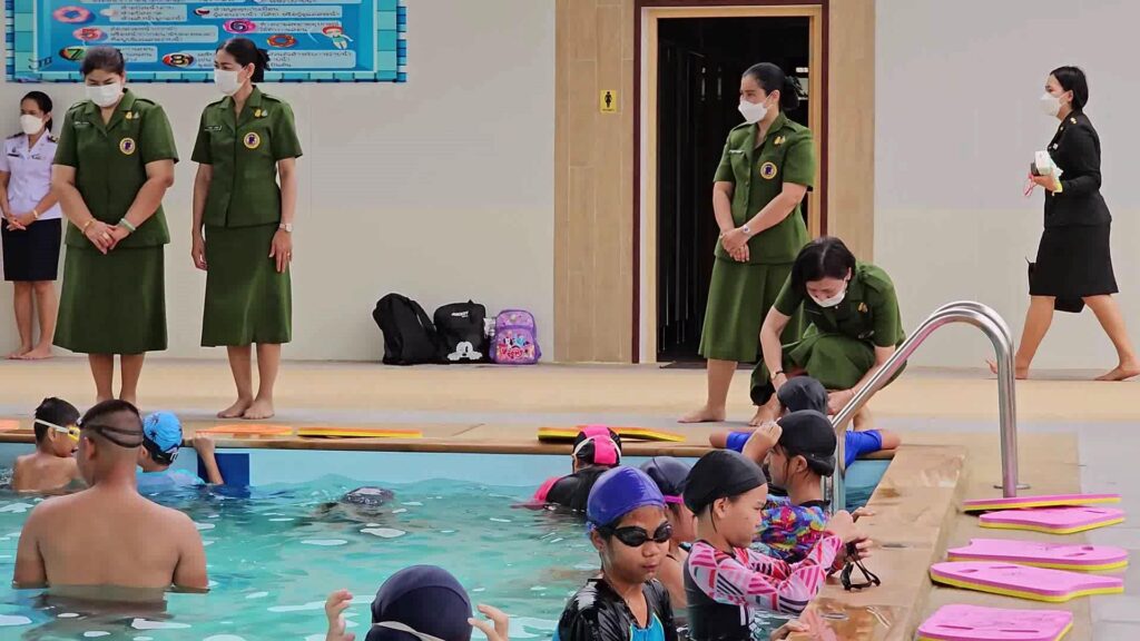 ที่ สระว่ายน้ำค่ายภูมิพล ต.เขาพระงาม อ.เมือง จ.ลพบุรี พลตรี นพสิทธิ์ คงชินศาสตร์ธิติ ผู้บัญชาการศูนย์การทหารปืนใหญ่ เป็นประธาน เปิดโครงการ ว่ายน้ำเป็น เล่นน้ำได้ ค่ายภูมิพล” รุ่นที่ 2 ซึ่งเป็นโครงการ พัฒนาคุณภาพชีวิตให้แก่ ครอบครัวกำลังพลของหน่วย และเยาวชนจากสถานศึกษาต่างๆ ในพื้นที่ชุมชนรอบค่าย โดยใช้สระว่ายน้ำของหน่วยในการดำเนินการให้เกิดประโยชน์สูงสุด โดยไม่มีค่าใช้จ่าย เพื่อส่งเสริมให้บุตรหลานกำลังพล และเยาวชนทั่วไป มีทักษะในการว่ายน้ำ สามารถช่วยเหลือตนเองได้ ไม่ตื่นกลัวน้ำ สามารถพยุงตัว ลอยตัวในน้ำ ตลอดจนสามารถช่วยเหลือตนเอง และผู้อื่นได้ตามความเหมาะสมกับช่วงวัย เพื่อลดปัญหาการเสียชีวิตจากการจมน้ำ อีกทั้งยังเป็นการเพื่อส่งเสริมสุขภาพร่างกายให้แก่เด็กและเยาวชน ในระหว่างปิดภาคเรียน ได้ใช้เวลาว่างให้เกิดประโยชน์ ห่างไกลจากยาเสพติด ช่วยลดพฤติกรรมเด็กติดเกม ในระหว่างปิดภาคเรียน โดยใช้พัฒนาการด้านการกีฬาเป็นสื่อ