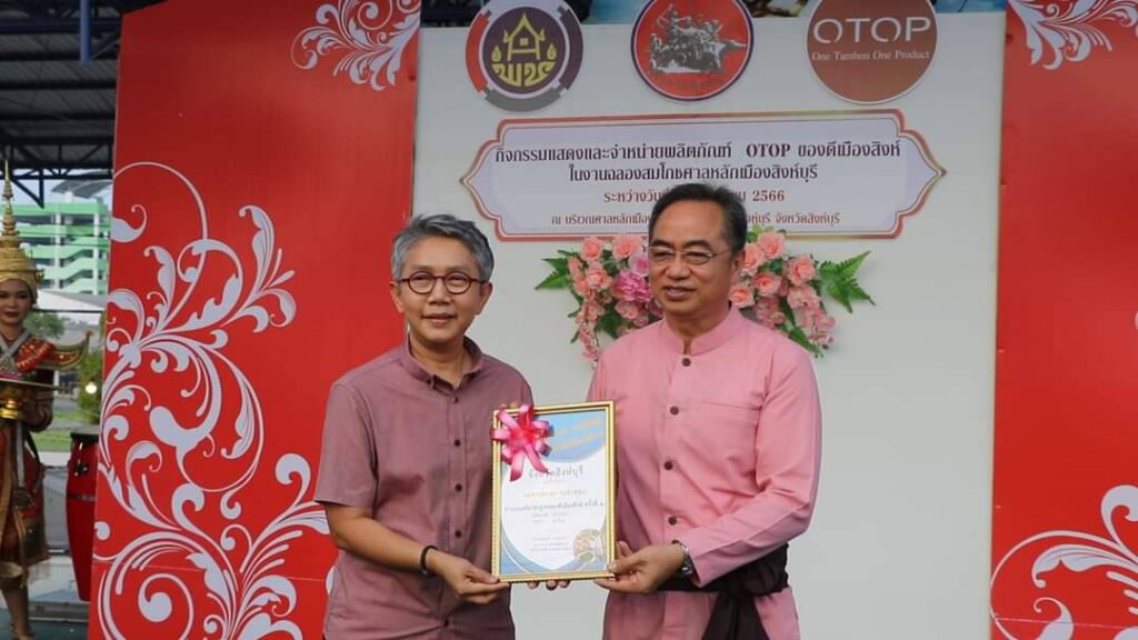 🔶 วันที่ 7 เมษายน 2566 เวลา 17.30 น. นายสุพจน์ ยศสิงห์คำ ผู้ว่าราชการจังหวัดสิงห์บุรี เป็นประธานพิธีเปิดแสดงและจำหน่ายผลิตภัณฑ์ OTOP ของดีเมืองสิงห์ ในงานฉลองสมโภชน์ศาลหลักเมืองสิงห์บุรี โดยมี นายสัมฤทธิ์ กองเงิน รองผู้ว่าราชการจังหวัดสิงห์บุรี พร้อมด้วย นางจิราภรณ์ กองเงิน รองนายกเหล่ากาชาดจังหวัดสิงห์บุรี นายสมชาย ลีหล้าน้อย รองผู้ว่าราชการจังหวัดสิงห์บุรี นายถวิล ยี่สุ้นแสง พัฒนาการจังหวัดสิงห์บุรี หัวหน้าส่วนราชการ และประชาชน เข้าร่วมพิธีเปิดฯ ณ บริเวณศาลหลักเมืองสิงห์บุรี อำเภอเมืองสิงห์บุรี จังหวัดสิงห์บุรี