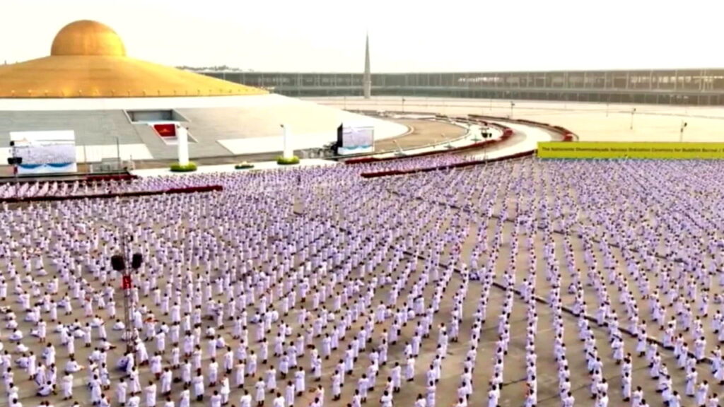วันที่ 8 เมษายน 2566 ที่สภาธรรมกายสากล วัดพระธรรมกาย ตำบลคลองสาม อำเภอคลองหลวง จังหวัดปทุมธานี เด็กนักเรียนและเยาวชนชาวพุทธจากทั่วประเทศร่วมพิธีบรรพชาสามเณร 5,000 รูป ในโครงการบรรพชาสามเณรฟื้นฟูพระพุทธศาสนาทั่วไทย “ปิดเทอม เติมธรรม” ปีพุทธศักราช 2566 มุ่งฝึกสมาธิสร้างพื้นฐานที่มั่นคงของอนาคตพุทธศาสนา