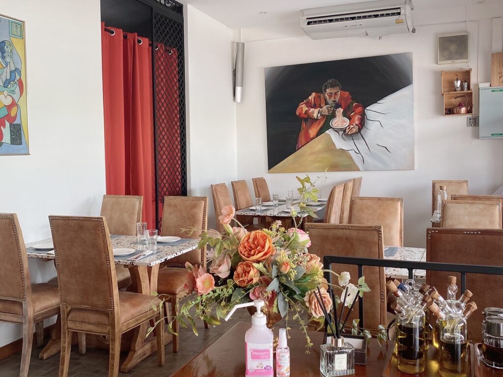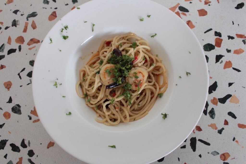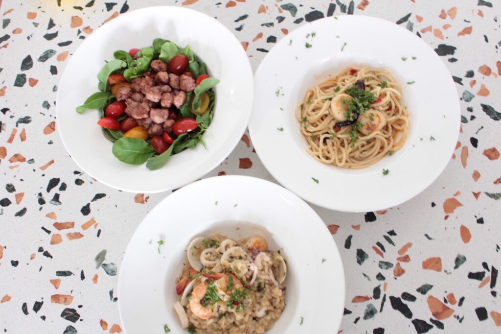 “เมื่อนำพิซซ่าเข้าเตาอบเส็จเรียบร้อย ไม่นานก็ได้ทานฝีมือตัวเอง อร่อยมากเลยครับ(ที่อร่อยน่าจะเป็นเพราะสูตรแป้งของทางร้าน) และเชฟยังใจดีทำอาหารอิตาเลียนเมนูแนะนำอย่าง สลัดร็อกเก็ตเสริฟกับไส้กรอกอิตาเลียนย่าง สปาเก็ตตี้ผัดกระเทียมพริกน้ำมันมะกอกและหอยเชลล์ ข้าวรีซอตโต้ซีฟู้ด สเต๊กอกไก่ พิซซ่ามอสซาเรลล่าชีสแอปเปิลซอสเบคอน และหน้าซีฟู๊ด เรียกได้ว่าอิ่ม อร่อยทุกเมนูเลยครับ”