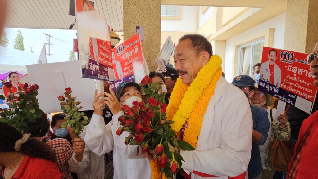 มีผู้สมัครดังนี้ หมายเลข 1 นายเอกราช แก้วเสมา พรรคก้าวไกล, หมายเลข 2 พ.อ.โกศล ทองดี พรรคเสรีรวมไทย , หมายเลข 3นายสิทธิชัย หล่อประสงค์สุข พรรคเพื่อไทย ,หมายเลข 4 นางสาวชมนภัส วงศ์พุ่มระย้า พรรคไทยภักดี , หมายเลข 5 พ.อ.สุชาติ คัดสูงเนิน พรรคพลังประชารัฐ ,หมายเลข 6 นายสุชาติ แสงนาค พรรคถิ่นกาขาวชาววิไล , หมายเลข 7 นางสาวศรีรัตน์ ฤกษ์พิชัย พรรคไทยสร้างไทย ,หมายเลข 8 นายปิติ เลิศวิริยะประภา พรรคประชาธิปัตย์ , หมายเลข 9 นายพิชัย เกียรติวินัยสกุล พรรครวมไทยสร้างชาติ , หมายเลข 10 นายเตชินณ์ ธาราธนวัต พรรคภูมิใจไทย , หมายเลข 11 นายสุชาติ ประกอบทอง พรรคเปลี่ยน