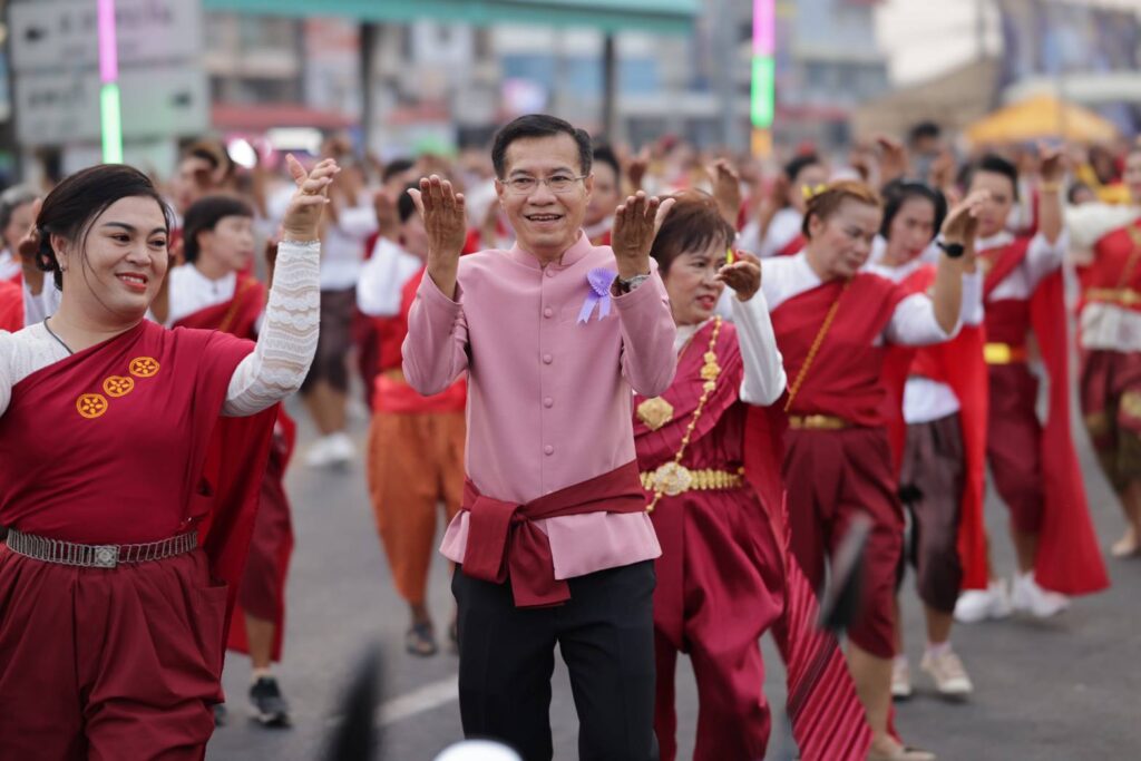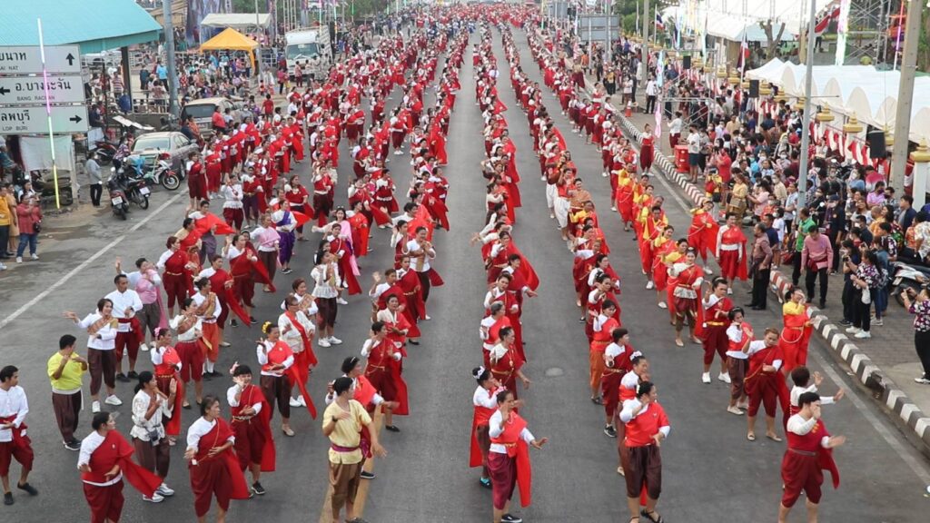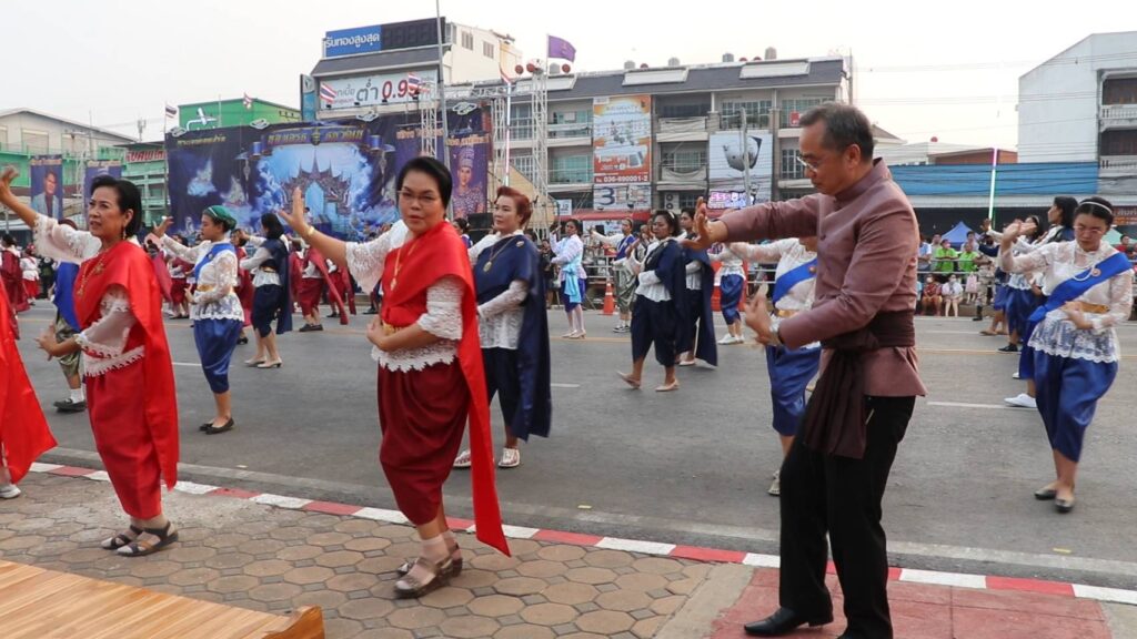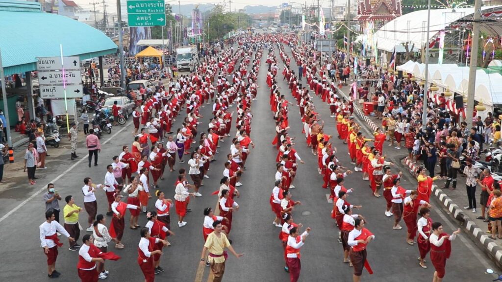 วันที่ 9 เมษายน 2566 เวลา 18.09 น.นายสุพจน์ ยศสิงห์คำ ผู้ว่าราชการจังหวัดสิงห์บุรี รองผู้ว่าราชการจังหวัดสิงห์บุรี ปลัดจังหวัดสิงห์บุรี หัวหน้าส่วนราชการ ข้าราชการ องค์กรปกครองส่วนท้องถิ่น พ่อค้า และประชาชนทั้ง 6 อำเภอ กว่า 800 คน ร่วมใจกันรำสมโภชศาลหลักเมืองตั้งแถวยาวตั้งแต่หน้าศาลหลักเมืองสิงห์บุรีไปถึงหน้าคลีนิคหมอสมหมาย รำทั้งหมด 6 เพลง 1. สาวเมืองสิงห์ 2. ชวนสาวเที่ยวเมืองสิงห์ 3. รำวงสิงห์บุรี 4. รำวงมหาดไทย 5. ชวนเที่ยวเมืองสิงห์ โดยเพลงที่ 5 จะแบ่งเป็น 2 ท่อน มี 6 อำเภอ และยังมีเพลงเมดเล่ในจังหวะต่างๆ ของคณะรำวง 3 ส. เป็นกิจกรรมที่สร้างสีสันและความภาคภูมิใจให้กับประชาชนจังหวัดสิงห์บุรีได้มีส่วนร่วมในงานสมโภชศาลหลักเมืองจังหวัดสิงห์บุรี ที่ถือเป็นไฮไลท์ของงานมีคณะนางรำจากอำเภอต่างๆ ได้ร่วมตัวแต่งกายย้อนยุคใส่โจงกระเบน พร้อมผ้าสไบสีแดงบ้านบางระจันสวยงาม เพื่อความเป็นสิริมงคลและเป็นการอนุรักษ์วัฒนธรรมประเพณีท้องถิ่นให้คงอยู่สืบไปตลอดจนเป็นการส่งเสริมการท่องเที่ยวรวมถึงการแสดงออกถึงความรักและความสามัคคีของชาวจังหวัดสิงห์บุรี