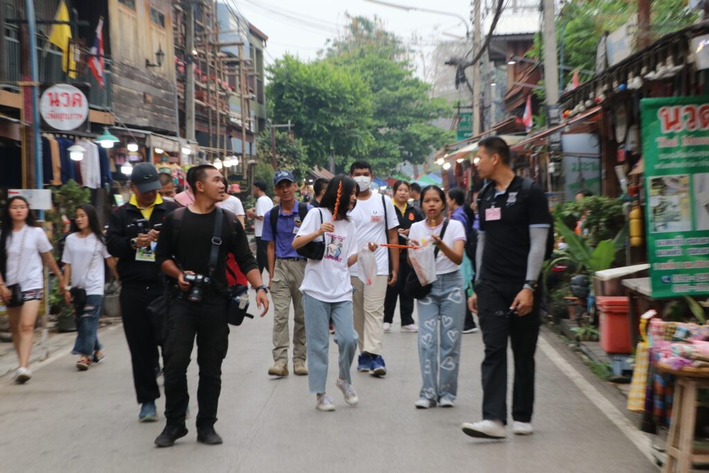 เยี่ยมชมถนนคนเดินเชียงคาน หรือ ชื่อเดิม ถนนชายโขง ตั้งอยู่ใน อำเภอเชียงคาน จังหวัดเลย ที่อยู่ติดริมแม่น้ำโขง เป็นตลาดนัดยามค่ำคืนที่ติดริมแม่น้ำโขง มีทั้งหมด 21 ซอย ระยะทางประมาณ 1.5 กิโลเมตร ถือเป็นสถานที่ยอดฮิตที่ใครมาเชียงคานแล้วต้องแวะมา เพราะที่นี่มีความแตกต่างและมีเอกลักษณ์ไม่เหมือนตลาดอื่นๆ ด้วยสองข้างของตลาดส่วนใหญ่เป็นบ้านไม้เก่าแก่ตลอดทั้งทาง ให้กลิ่นอายความเป็นคาสสิกย้อนยุคประจบกับการได้สัมผัสวิถีชีวิตของผู้คนที่นี่ จึงทำให้ถนนคนเดินเป็นจุดมุ่งหมายของเหล่านักท่องเที่ยวทั้งหลายที่มาเยือนจังหวัดเลย อาหารก็มีให้เลือกอย่างหลากหลาย และในช่วงค่ำณะเยาวชนได้ร่วมรับประทานอาหารเย็นที่ คลับเฮ้าส์สนามกอล์ฟกำลังเอก ค่ายศรีสองรัก โดยมีมัคคุเทศก์น้อยมณฑลทหารบกที่ 28 กล่าวต้อนรับ พร้อมรับชมการแสดงของนักเรียนโรงเรียนเลยพิทยาคมแสดงฟ้อนโปงลางและผีตาโขน กิจกรรมวาดระบายสีผีตาโขน การนำแสดงวัฒนธรรมท้องถิ่นอันเป็นเอกลักษณ์ของจังหวัดเลย และเดินทางเข้าที่พักโรงแรมคิริมาธานี โดยคณะเยาวชนจากกองทัพภาคที่ 4 ที่ได้ทัศนศึกษาในพื้นที่ จังหวัดเลยในวันนี้ รู้สึกดีใจได้ความรู้มากมาย ทำให้มีความรักชาติหวงแหนผืนแผ่นดินไทย และมีความสุขที่ได้เดินทางมาทัศนศึกษาในพื้นที่จังหวัดเลย ในครั้งนี้