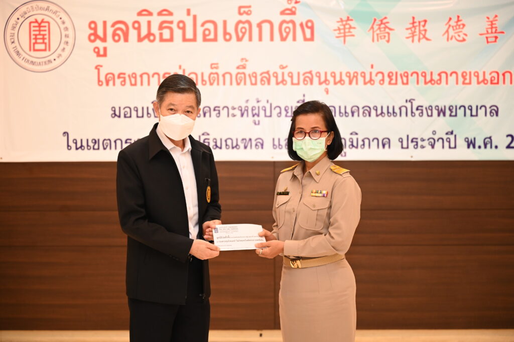วันนี้ (วันจันทร์ที่ 10 เมษายน 2566) มูลนิธิป่อเต็กตึ๊ง โดย นายวิเชียร เตชะไพบูลย์ ประธานกรรมการ เป็นประธานในพิธี พร้อมด้วย นายสัก กอแสงเรือง รองประธานกรรมการ นายวิชิต ชินวงศ์วรกุล รองประธานกรรมการ คณะกรรมการ และผู้ช่วยกรรมการมูลนิธิฯ ร่วมในพิธีมอบเงินสงเคราะห์ผู้ป่วยที่ขาดแคลนแก่โรงพยาบาล และหน่วยงานต่างๆ ในพื้นที่กรุงเทพมหานคร ปริมณฑล และ จังหวัดใกล้เคียง จำนวน 34 แห่ง โดยมีผู้แทนโรงพยาบาล และหน่วยงานสาธารณสุข เป็นผู้รับมอบ ณ ห้องประชุมชั้น 2 อาคาร 2 มูลนิธิป่อเต็กตึ๊ง พลับพลาไชย กรุงเทพฯ นอกจากนี้ มูลนิธิป่อเต็กตึ๊ง ยังกำหนดมอบเงินสงเคราะห์ผู้ป่วยที่ขาดแคลนให้กับโรงพยาบาล และหน่วยงานสาธารณสุข ในส่วนภูมิภาค จำนวน 44 แห่ง โดยมีมูลนิธิฯ /สมาคมจีนประจำจังหวัดต่างๆ เป็นตัวแทนมอบ