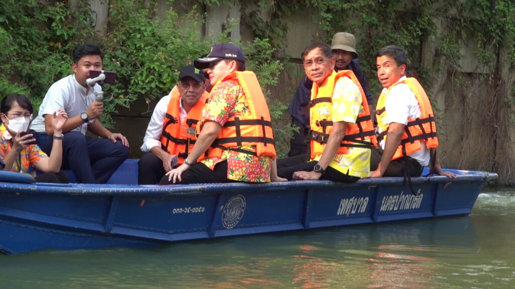 วันที่ 11 เมษายน 2566 นายชัชชาติ สิทธิพันธุ์ ผู้ว่าราชการกรุงเทพมหานคร ร่วมกับ พล.ต.ท.คำรณวิทย์ ธูปกระจ่าง นายก อบจ.ปทุมธานี และ นายวิชัย บรรดาศักดิ์ นายกเทศมนตรีนครปากเกร็ด ลงเรือสำรวจคลองบ้านใหม่ อ.ปากเกร็ด จ.นนทบุรี เพื่อบูรณาการทำงานร่วมกันป้องกันน้ำท่วมในฤดูน้ำหลาก ใน 3 จังหวัด คือ กรุงเทพมหานคร จังหวัดปทุมธานี และจังหวัดนนทบุรี โดยลงเรือจากประตูระบายน้ำคลองบ้านใหม่ ไปจนถึงประตูระบายน้ำระบายบริเวณถนนติวานนท์ จ.นนทบุรี