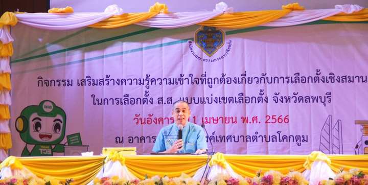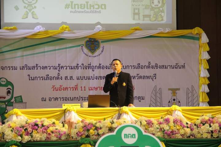 จัดกิจกรรมเสริมสร้างความรู้ความเข้าใจที่ถูกต้องเกี่ยวกับการเลือกตั้งเชิงสมานฉันท์ ในการเลือกตั้งสมาชิกสภาผู้แทนราษฎรแบบแบ่งเขตเลือกตั้ง จังหวัดลพบุรี ให้กับผู้สมัครรับเลือกตั้งสมาชิกสภาผู้แทนราษฎรแบบแบ่งเขตเลือกตั้ง และผู้ติดตาม
