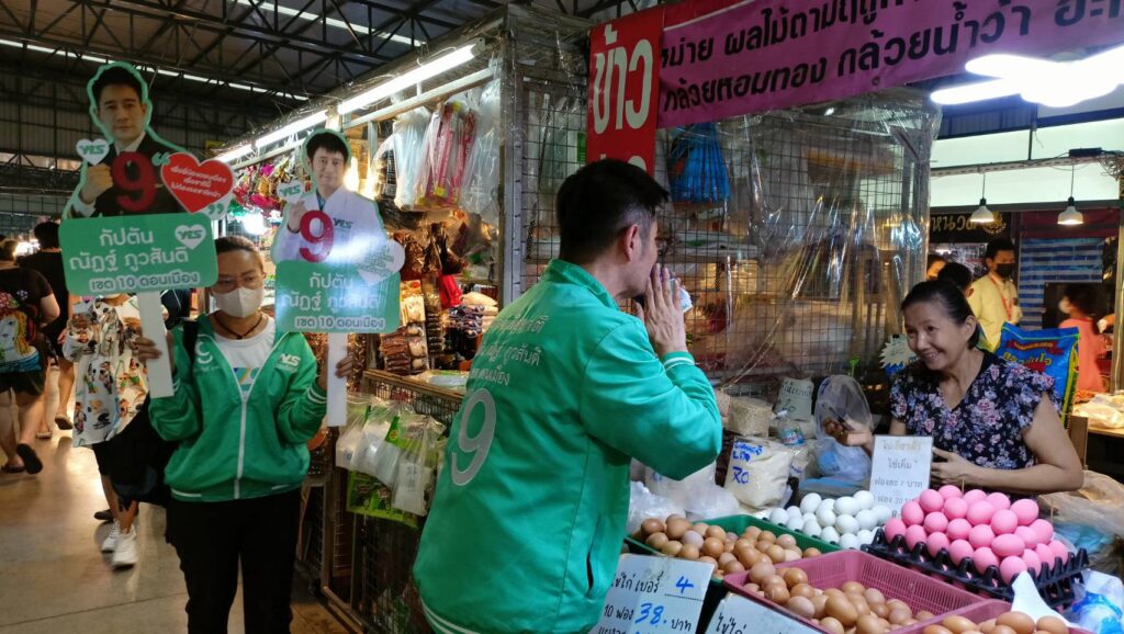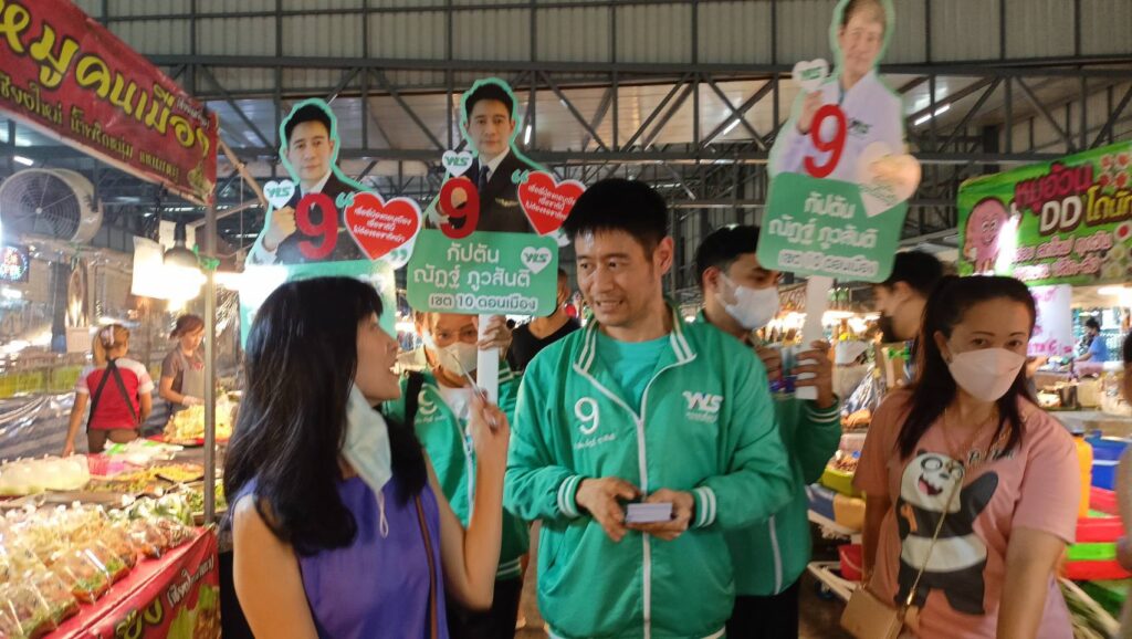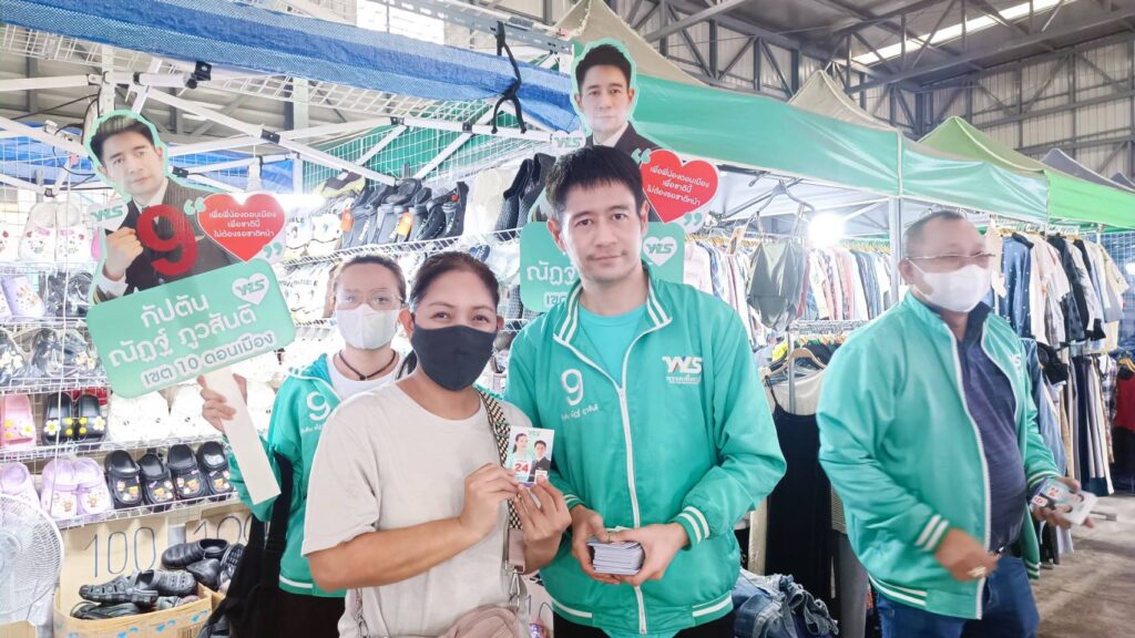 “กัปตัน ณัฏฐ์” ผู้สมัคร สส.พรรคเพื่อชาติ เขต ดอนเมือง เบอร์ 9 ลงพื้นที่ ขอคะแนนเสียงที่ ตลาดบุญอนันต์ ดอนเมือง พบปะพี่น้องประชาชนที่มาจับจ่ายใช้สอย แนะนำตัวและชูนโยบาย พรรคเพื่อชาติ