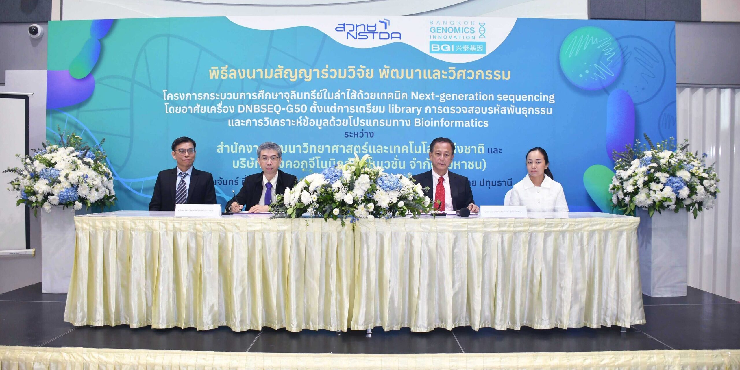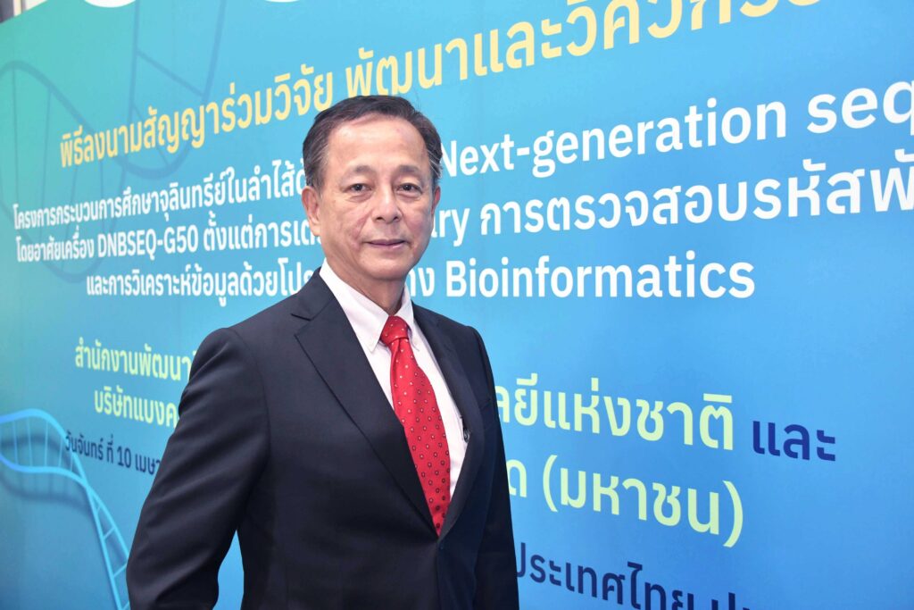 นายปรีชา เลาหพงศ์ชนะ กรรมการบริษัทฯ กล่าวว่า บริษัทแบงคอกจีโนมิกส์อินโนเวชั่น จํากัด (มหาชน) มีความยินดีเป็นอย่างยิ่งที่ได้ร่วมมือศึกษาวิจัยความหลากหลายจุลินทรีย์ในลำไส้ของประชากรไทยที่มีสุขภาพดี กับ สำนักงานพัฒนาวิทยาศาสตร์และเทคโนโลยีแห่งชาติ ซึ่งมีความรู้ ความเชี่ยวชาญในด้านการวิจัยและพัฒนาเทคโนโลยีการตรวจวิเคราะห์ เพื่อพัฒนาต่อยอดเป็นระบบสารสนเทศที่เป็นฐานข้อมูลจุลินทรีย์ในลำไส้ของประชากรไทยในอนาคต โดย บริษัทฯ หวังเป็นอย่างยิ่งว่า ด้วยความร่วมมือครั้งนี้จะเป็นประโยชน์ต่อประชากรไทย ในด้านการส่งเสริมเทคโนโลยีการตรวจที่มีประสิทธิภาพ และพัฒนาบุคลากรในประเทศ รวมถึงการขยายความร่วมมือด้านงานวิจัยและพัฒนาร่วมกับ สวทช. อย่างต่อเนื่องในอนาคต”