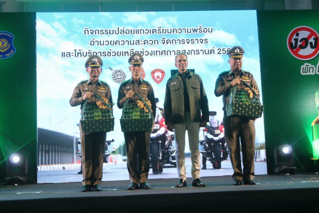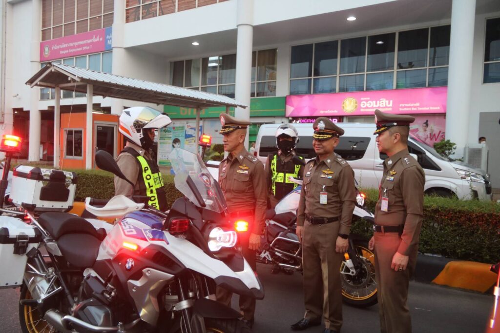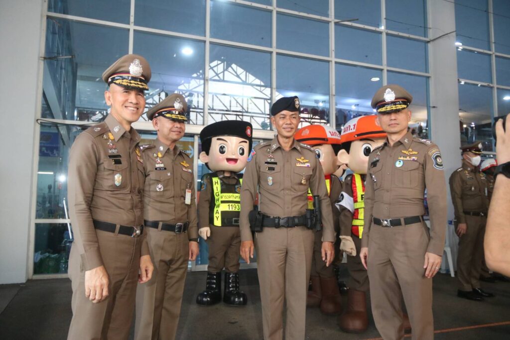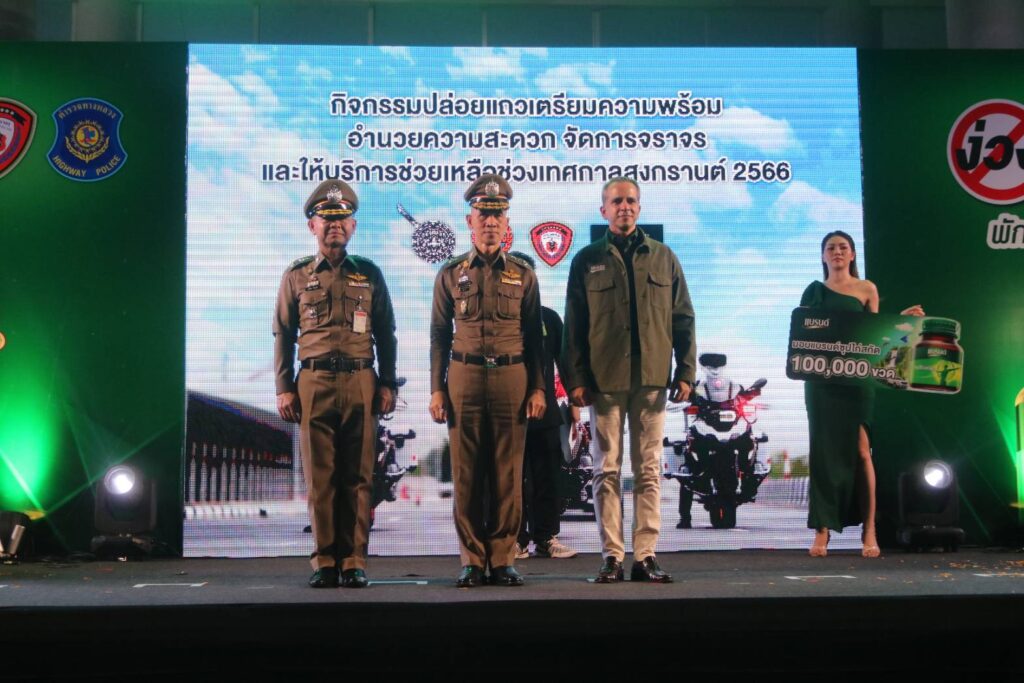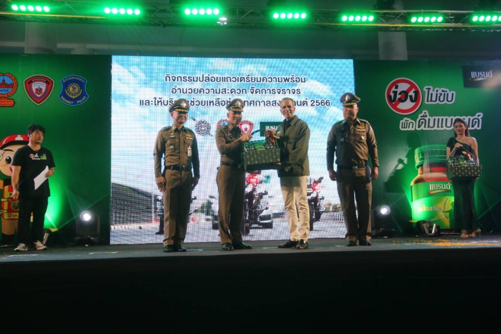เมื่อวันจันทร์ที่ 10 เม.ย.66 เวลา 18.30 น. : พล.ต.ต.จิรสันต์ แก้วแสงเอก รอง ผบช.น./โฆษก บช.น. ประธานในพิธี พร้อมด้วย พล.ต.ต.ศุภเศรษฐ์ โชคชัย รอง ผบช.ทท.,พล.ต.ต.สุวิชชา จินดาคำ ผบก.จร.,พล.ต.ต.เอกราช ลิ้มสังกาศ ผบก.ทล. ร่วมกับ บริษัท ซันโทรี่ เบเวอเรจ แอนด์ ฟู๊ด (ประเทศไทย) จำกัด โดย คุณโอเมอร์ มาลิค ประธานเจ้าหน้าที่บริหาร ซันโทรี่ เบเวอเรจ แอนด์ ฟู๊ด ประเทศไทยและอินโดไชน่า และคุณจตุรพร ธนาพรสังสุทธิ์ รองกรรมการผู้จัดการฝ่ายการตลาด ซันโทรี่ เบเวอเรจ แอนด์ ฟู๊ด ประเทศไทยและอินโดไชน่า ร่วมพิธีเปิดกิจกรรมปล่อยแถวเตรียมความพร้อมอำนวยความสะดวกจัดการจราจรและให้บริการช่วยเหลือประชาชนช่วงเทศกาลสงกรานต์ 2566 โดยมีแขกผู้มีเกียรติและเจ้าหน้าที่ที่เกี่ยวข้อง เข้าร่วมพิธีเปิดกิจกรรมในครั้งนี้ ณ สถานีขนส่งโดยสารกรุงเทพ (สายใต้)
