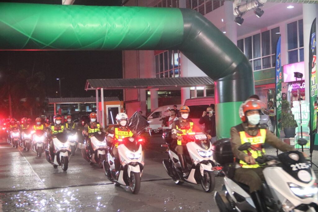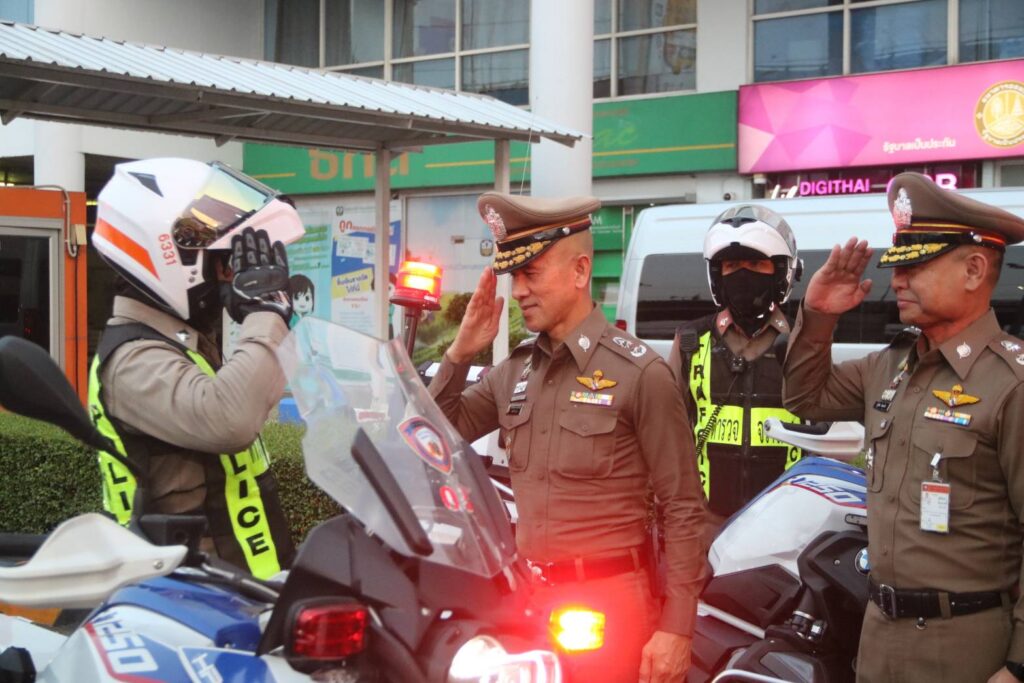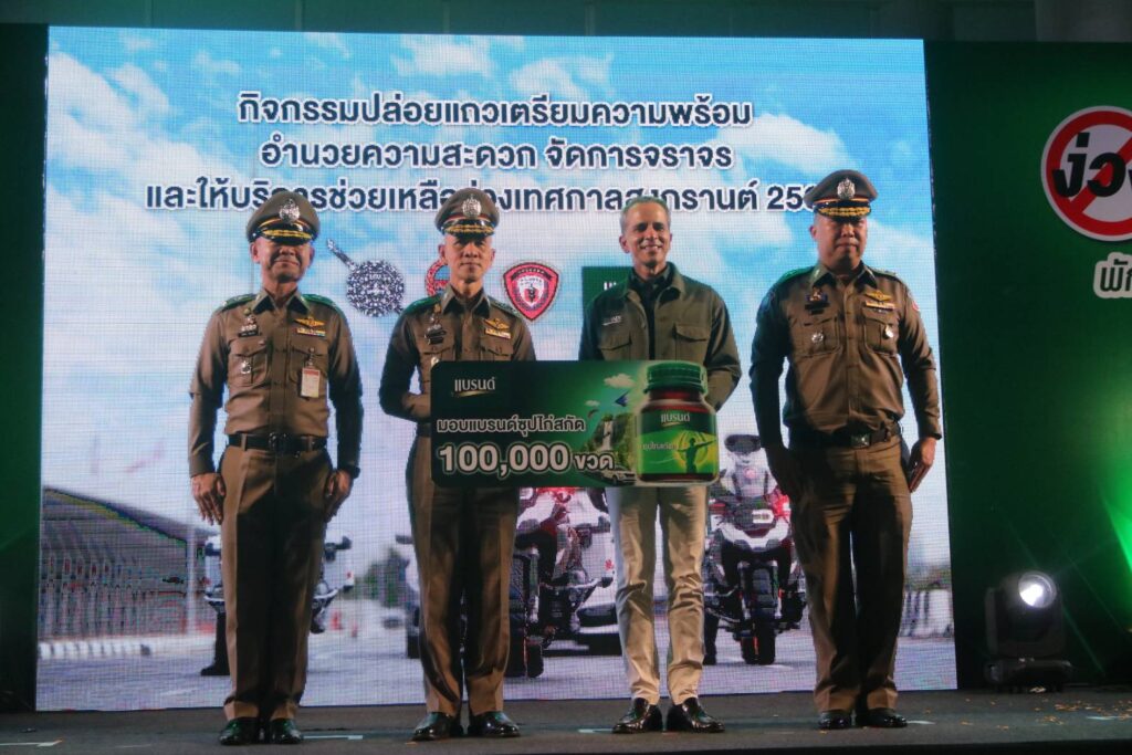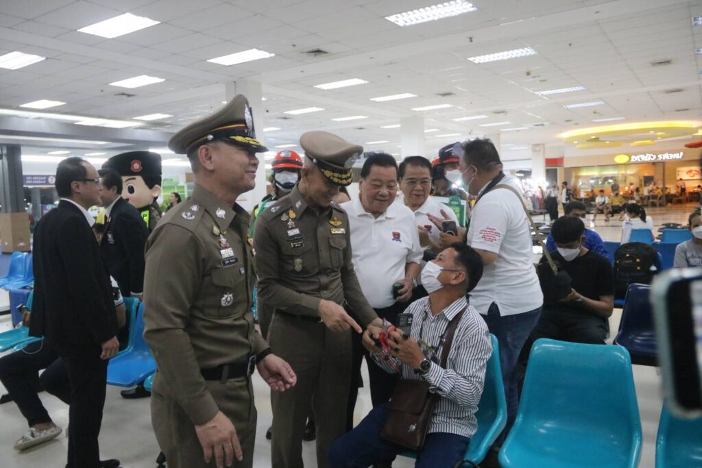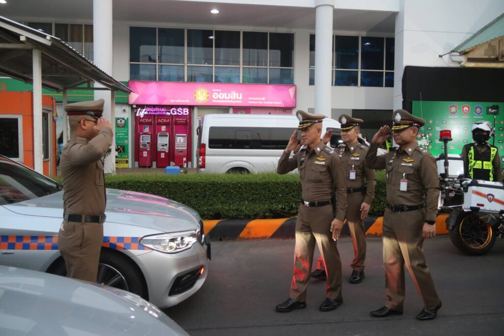 เมื่อวันจันทร์ที่ 10 เม.ย.66 เวลา 18.30 น. : พล.ต.ต.จิรสันต์ แก้วแสงเอก รอง ผบช.น./โฆษก บช.น. ประธานในพิธี พร้อมด้วย พล.ต.ต.ศุภเศรษฐ์ โชคชัย รอง ผบช.ทท.,พล.ต.ต.สุวิชชา จินดาคำ ผบก.จร.,พล.ต.ต.เอกราช ลิ้มสังกาศ ผบก.ทล. ร่วมกับ บริษัท ซันโทรี่ เบเวอเรจ แอนด์ ฟู๊ด (ประเทศไทย) จำกัด โดย คุณโอเมอร์ มาลิค ประธานเจ้าหน้าที่บริหาร ซันโทรี่ เบเวอเรจ แอนด์ ฟู๊ด ประเทศไทยและอินโดไชน่า และคุณจตุรพร ธนาพรสังสุทธิ์ รองกรรมการผู้จัดการฝ่ายการตลาด ซันโทรี่ เบเวอเรจ แอนด์ ฟู๊ด ประเทศไทยและอินโดไชน่า ร่วมพิธีเปิดกิจกรรมปล่อยแถวเตรียมความพร้อมอำนวยความสะดวกจัดการจราจรและให้บริการช่วยเหลือประชาชนช่วงเทศกาลสงกรานต์ 2566 โดยมีแขกผู้มีเกียรติและเจ้าหน้าที่ที่เกี่ยวข้อง เข้าร่วมพิธีเปิดกิจกรรมในครั้งนี้ ณ สถานีขนส่งโดยสารกรุงเทพ (สายใต้)