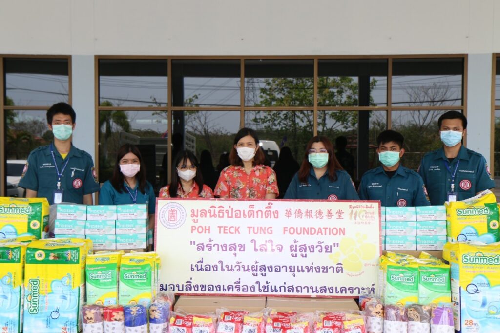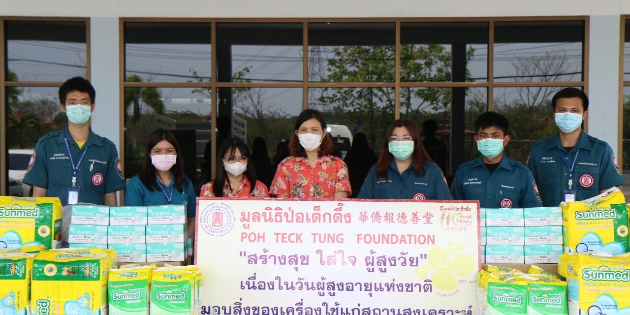 วันนี้ (วันอังคารที่ 11 เมษายน 2566) มูลนิธิป่อเต็กตึ๊ง นำโดย นายวิชิต ชินวงศ์วรกุล รองประธานกรรมการ พร้อมด้วย นางศิริพร กระจ่างหล้า ผู้จัดการฝ่ายสังคมสงเคราะห์ และ นางสาวศุภรัตน์ สมบัติเจริญไทย หัวหน้าแผนกส่งเสริมการศึกษาและอาชีพ นำทีมสังคมสงเคราะห์ลงพื้นที่สถานคุ้มครองคนไร้ที่พึ่งนนทบุรี จ.นนทบุรี ศูนย์พัฒนาการจัดสวัสดิการสังคมผู้สูงอายุปทุมธานี จ.ปทุมธานี สถานคุ้มครองคนไร้ที่พึ่งชายธัญบุรี จ.ปทุมธานี สถานคุ้มครองคนไร้ที่พึ่งหญิงธัญบุรี จ.ปทุมธานี สถานสงเคราะห์คนพิการและทุพพลภาพพระประแดง จ.สมุทรปราการ สถานสงเคราะห์คนชราเฉลิมราชกุมารี (หลวงพ่อเปิ่นอุปถัมภ์) จ.นครปฐม และสถานสงเคราะห์คนชรานครปฐม จ.นครปฐม เพื่อมอบสิ่งของเครื่องใช้จำเป็น ประกอบด้วย ผ้าอ้อมสำเร็จรูป แผ่นรองซับ หน้ากากอนามัย น้ำยาฆ่าเชื้อโรค ผงซักฟอก ผ้าเช็ดตัว และ แป้งเย็น รวม 7 รายการ เพื่อเป็นขวัญและกำลังใจแก่ผู้สูงอายุ เนื่องในวันผู้สูงอายุแห่งชาติ ประจำปี 2566 โดยมี ผู้บริหารของสถานสงเคราะห์แต่ละแห่งเป็นผู้รับมอบ