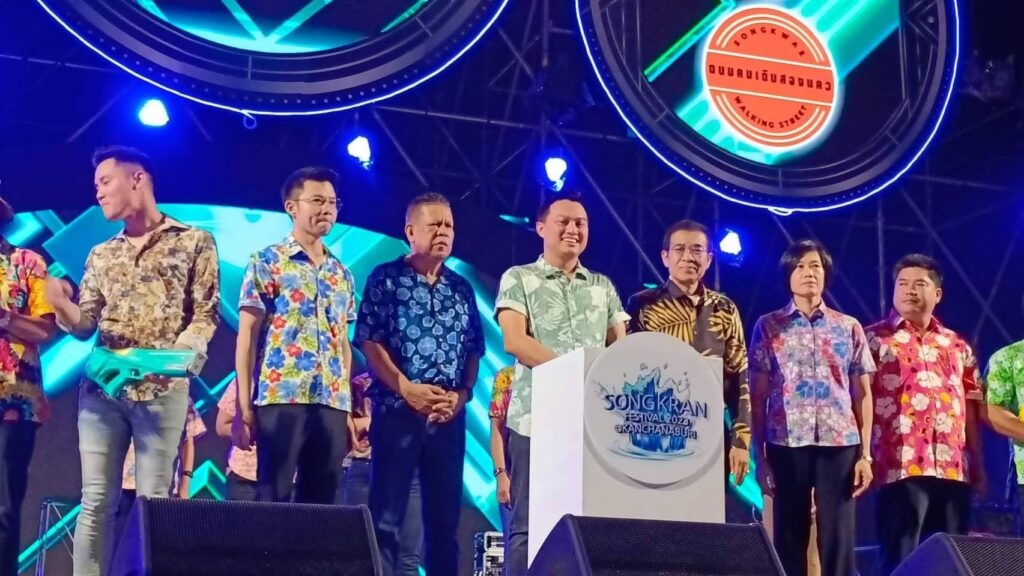 รองผู้ว่าราชการจังหวัดกาญจนบุรี เปิดงาน “Songkran Festival 2023@Kanchanaburi ” เพื่อสืบสานประเพณีสงกรานต์และกระตุ้นเศรษฐกิจของจังหวัดกาญจนบุรี ที่ บริเวณถนนสองแคว ริมน้ำหน้าเมืองกาญจนบุรี (สกายวอล์คสองแควกาญจนบุรี) อำเภอเมือง จังหวัดกาญจนบุรี นายศักรินทร์ ทุมเสน รองผู้ว่าราชการจังหวัดกาญจนบุรี เป็นประธานในพิธีเปิดงาน “Songkran Festival 2023@Kanchanaburi ” จึงจัดขึ้นระหว่างวันที่ 13-14 เมษายน 2566 ตั้งแต่เวลา 17.00 น.- 00.00น.เพื่อสืบสานประเพณีสงกรานต์ และกระตุ้นเศรษฐกิจของจังหวัดกาญจนบุรี โดยมีหัวหน้าส่วนราชการ ภาคเอกชน ประชาชน เข้าร่วมงานจำนวนมาก งาน”Songkran Festival 2023@Kanchanaburi ” เป็นกิจกรรมตามนโยบายของรัฐบาลในการส่งเสริมการท่องเที่ยวของจังหวัดกาญจนบุรี ให้เป็นเมืองท่องเที่ยวที่สำคัญสร้างรายได้ให้กับผู้ประกอบการและประชาชนในจังหวัดกาญจนบุรี รวมทั้งเพื่อส่งเสริมอนุรักษ์ สืบสาน ฟื้นฟูประเพณีสงกรานต์ให้คงอยู่สืบไป ภายในงานชมการแสดงศิลปะวัฒนธรรม โดยกลุ่มผู้สูงอายุ การจำลองสถานที่สำหรับส่งน้ำพระและกรอบพระเจดีย์ทรายเพื่อเป็นจุดถ่ายภาพเช็คอิน กิจกรรมแสงสีเสียง ประกอบดนตรีและอุโมงค์น้ำ การออกร้านจำหน่ายอาหาร และสินค้าจากร้านค้าที่มีชื่อเสียงในจังหวัดกาญจนบุรี กว่า 600 ร้านค้า