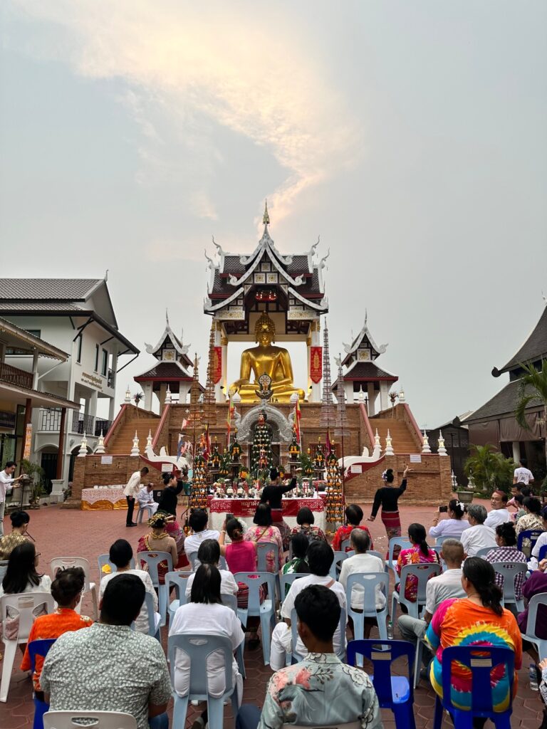 โดยมี พระครูปลัดธีร์นวัช ญาณสิทฺธิวาที เจ้าอาวาสวัดยางกวง จังหวัดเชียงใหม่ เป็นประธานสงฆ์ พิธีเริ่มโดย มาดามหยก จุดธูปเทียน และถวายเครื่องสักการะ จากนั้นชมการแสดง รำฟ้อนถวาย พญามังราย และ ตีฆ้องใหญ่ เพื่อเอาฤกษ์เบิกชัยให้กับ พรรครวมแผ่นดิน ประสบความสำเร็จในการเลือกตั้ง ประจำปี ๒๕๖๖ ที่จะถึงนี้!!!