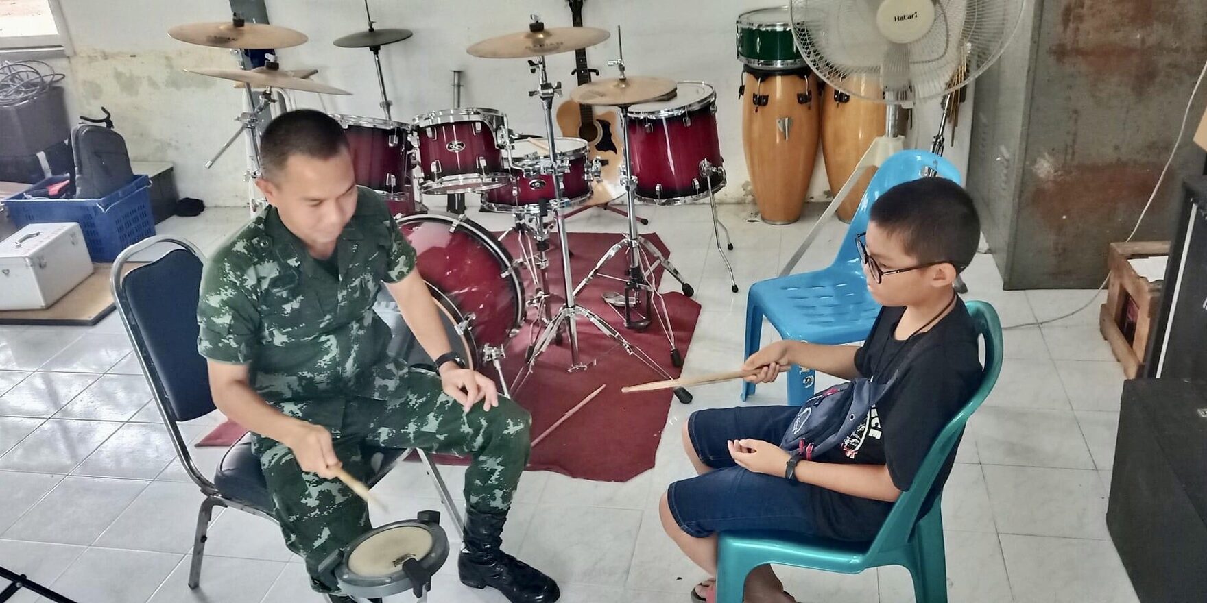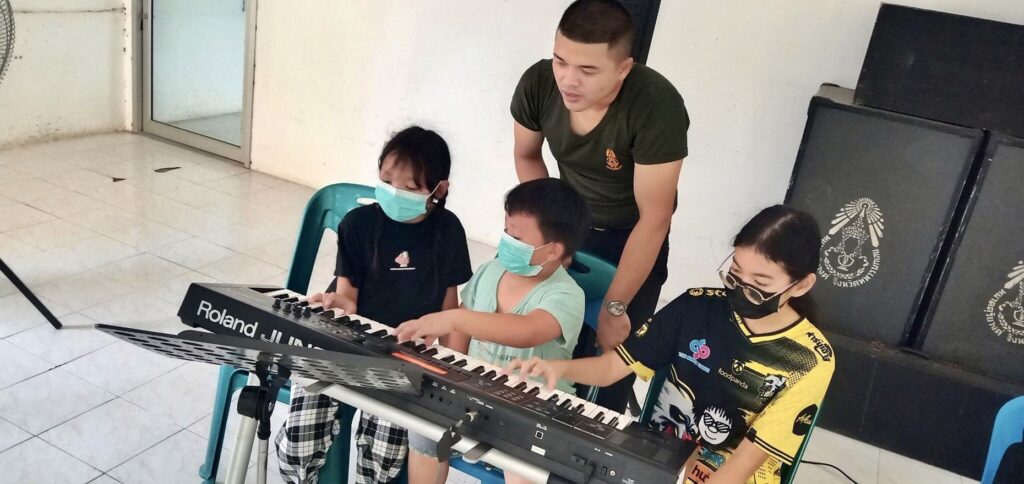ที่ค่ายศรีสองรัก อำเภอเมือง จังหวัดเลย พลตรีปริชญ์ สุคันธศรี ผู้บัญชาการมณฑลทหารบกที่ 28 มอบหมายให้หมวดดุริยางค์ มณฑลทหารบกที่ 28 ได้ทำการฝึกสอนเครื่องดนตรีชนิดต่างๆ ให้กับเยาวชนที่เป็นบุตรหลานของกำลังพลและเยาวชนรอบค่ายศรีสองรัก ในช่วงปิดภาคเรียน ตั้งแต่วันที่ 18 – 28 เมษายน 2566 รวมจำนวน 10 วัน เพื่อเปิดโอกาสให้เยาวชนได้แสดงออกและเพิ่มพูนความรู้ความสามารถทางด้านดนตรีทั้งทฤษฎีและการปฏิบัติ อีกทั้งเป็นการใช้เวลาว่างให้เกิดประโยชน์ไม่ยุ่งเกี่ยวกับยาเสพติดและ เป็นการผ่อนคลายอารมณ์ของเยาวชน รวมถึงเพื่อต่อยอดในการเป็นนักเรียนดุริยางค์ในอนาคตอีกด้วย โดยเปิดการสอนดนตรีให้กับเด็กเยาวชนตั้งแต่อายุ 7 ปีขึ้นไป ที่มีความสนใจทางด้านดนตรี มีเยาวชนให้ความสนใจเข้าร่วมโครงการ จำนวน 13 คน แบ่งเป็นเครื่องดนตรีประเภทต่างๆ ได้แก่ เปียโน ทรัมเป็ต กีตาร์เบส กีตาร์ไฟฟ้า กลองชุด และไวโอลิน