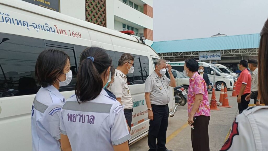 อัจจิมานนท์ รองผู้อำนวยการฝ่ายการแพทย์ พร้อมด้วยบุคลากร ร่วมกันส่งมอบรถพยาบาล ให้แก่ นายอำนวย