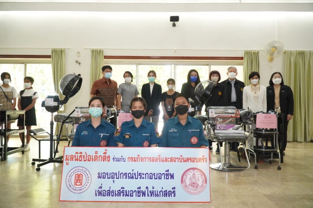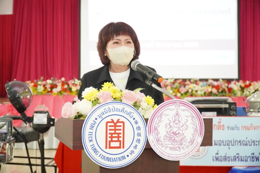 นางศิริกุล โอภาสวงศ์ กรรมการและเลขาธิการ เปิดเผยว่า โครงการส่งเสริมอาชีพเพื่อสตรี มูลนิธิป่อเต็กตึ๊ง ร่วมกับ กรมกิจการสตรีและสถาบันครอบครัว กระทรวงการพัฒนาสังคมและความมั่นคงของมนุษย์ โดยมูลนิธิฯ กำหนดมอบวัสดุอุปกรณ์ประกอบอาชีพให้แก่สตรีที่มีฐานะยากจน มีภาระหน้าที่ดูแลคนในครอบครัว เป็นแม่เลี้ยงเดี่ยว หรือด้อยโอกาสทางสังคม เป็นผู้มีความรู้ความสามารถ แต่ขาดแคลนวัสดุอุปกรณ์ประกอบอาชีพ รวม 8 ศูนย์เรียนรู้การพัฒนาสตรีและครอบครัว ได้แก่ จังหวัดนนทบุรี จังหวัดสงขลา จังหวัดศรีสะเกษ จังหวัดขอนแก่น จังหวัดลำพูน จังหวัดลำปาง จังหวัดเชียงราย และจังหวัดพิษณุโลก ให้ได้มีวัสดุอุปกรณ์ไปประกอบอาชีพเลี้ยงตนเองและครอบครัว เพื่อเป็นการลดปัญหาความเหลื่อมล้ำในสังคม สร้างความสุขสู่ชุมชน สังคม และประเทศชาติอย่างยั่งยืนต่อไป โดยเมื่อวันที่ 7 เมษายน พ.ศ. 2566 ที่ผ่านมา มูลนิธิป่อเต็กตึ๊ง ได้ดำเนินการมอบวัสดุอุปกรณ์ประกอบอาชีพแก่สตรี ณ ศูนย์เรียนรู้การพัฒนาสตรีและครอบครัวภาคกลาง จังหวัดนนทบุรี จำนวน 1 ราย และในวันที่ 27 เมษายน 2566 มูลนิธิฯ กำหนดมอบวัสดุอุปกรณ์ประกอบอาชีพแก่สตรี จำนวน 3 ราย โดยมี ศูนย์เรียนรู้การพัฒนาสตรีและครอบครัวภาคใต้ อำเภอรัตภูมิ จังหวัดสงขลา เป็นผู้แทนมูลนิธิฯ มอบเป็นลำดับต่อไป รวมมอบ 3 จังหวัด คิดเป็นมูลค่าทั้งสิ้น 220,940 (สองแสนสองหมื่นเก้าร้อยสี่สิบบาทถ้วน)