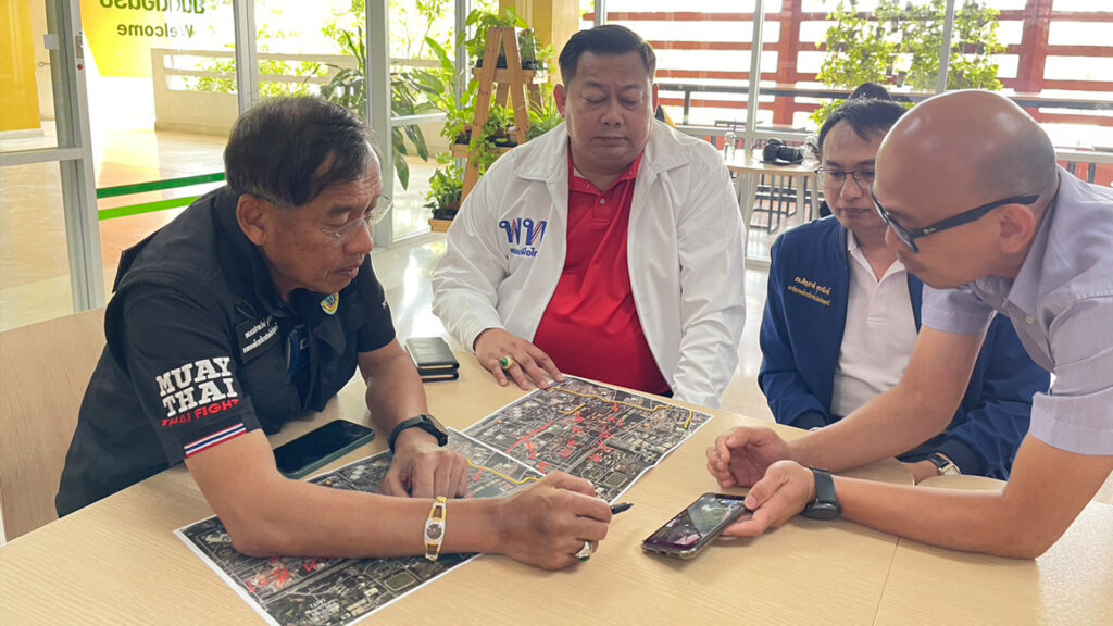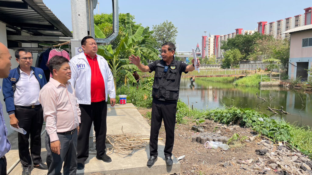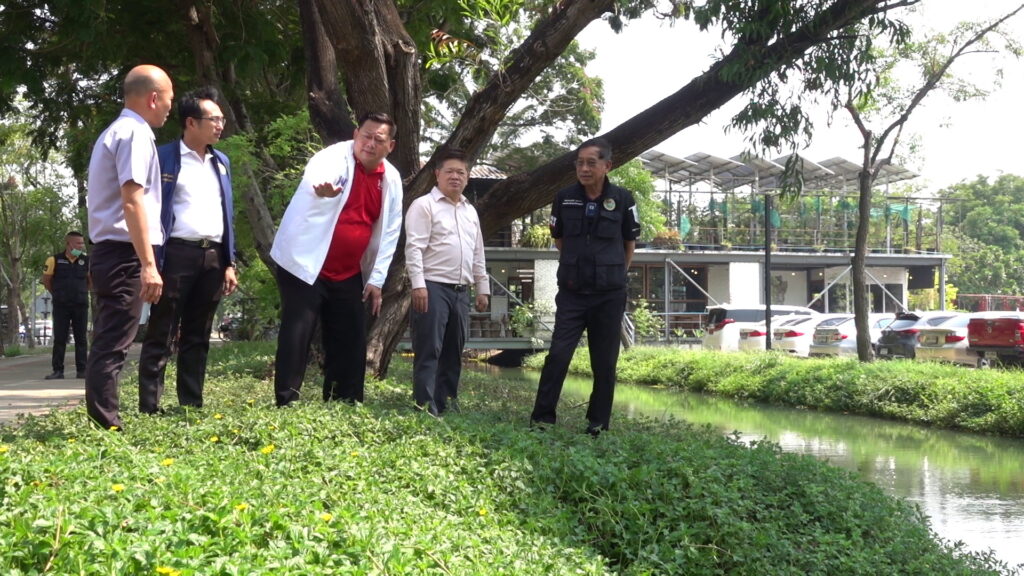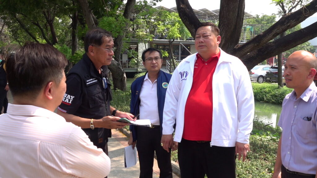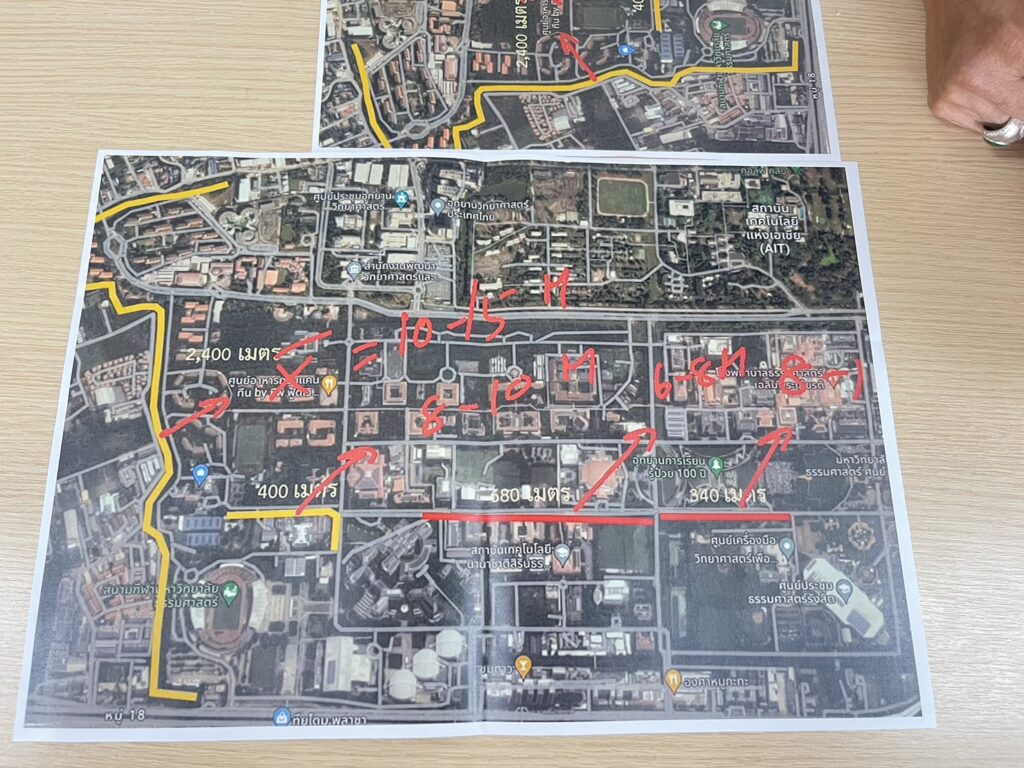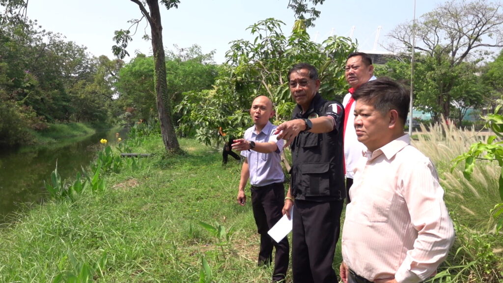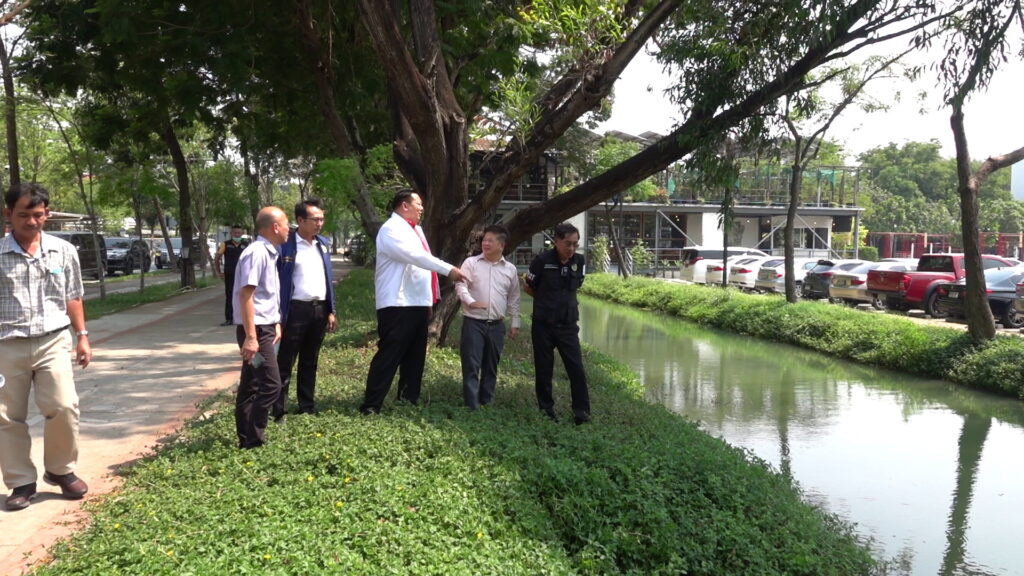 เมื่อเวลา 15.00 น. วันที่ 20 เมษายน 2566 ที่มหาวิทยาลัยธรรมศาสตร์ ศูนย์รังสิต ต.คลองหนึ่ง อ.คลองหลวง จ.ปทุมธานี พล.ต.ท.คำรณวิทย์ ธูปกระจ่าง นายกองค์การบริหารส่วนจังหวัดปทุมธานี ลงพื้นที่สำรวจและวางแผนเตรียมการขุดคลองระบายน้ำภายในมหาวิทยาลัยธรรมศาสตร์ ศูนย์รังสิต เพื่อปกป้องน้ำท่วมทั้งในมหาวิทยาลัยธรรมศาสตร์ ศูนย์รังสิต และพื้นที่ชุมชนใกล้เคียงอย่างยั่งยืน โดยมี นายยุทธศักดิ์ ชูประเสริฐ (จ่ายุทธ) ผู้สมัคร ส.ส.เขต 3 พรรคเพื่อไทย ผู้ประสานงาน พร้อมกับนายสัญชาติ คุระนันท์ สมาชิกสภาอบจ.อำเภอคลองหลวง , นายยรรยง อัครจินดานนท์ ผอ.สำนักงานบริหารทรัพย์สินและกีฬา มหาวิทยาลัยธรรมศาสตร์ ศูนย์รังสิต ร่วมกับเจ้าหน้าที่ มธ. ร่วมสำรวจพื้นที่ได้รับผลกระทบจากปัญหาน้ำท่วม