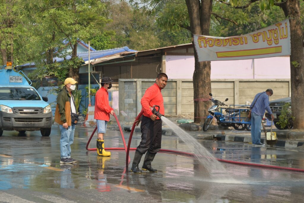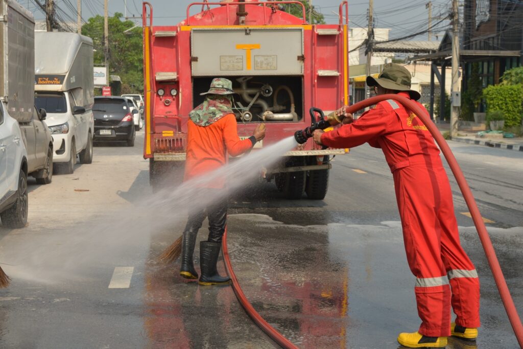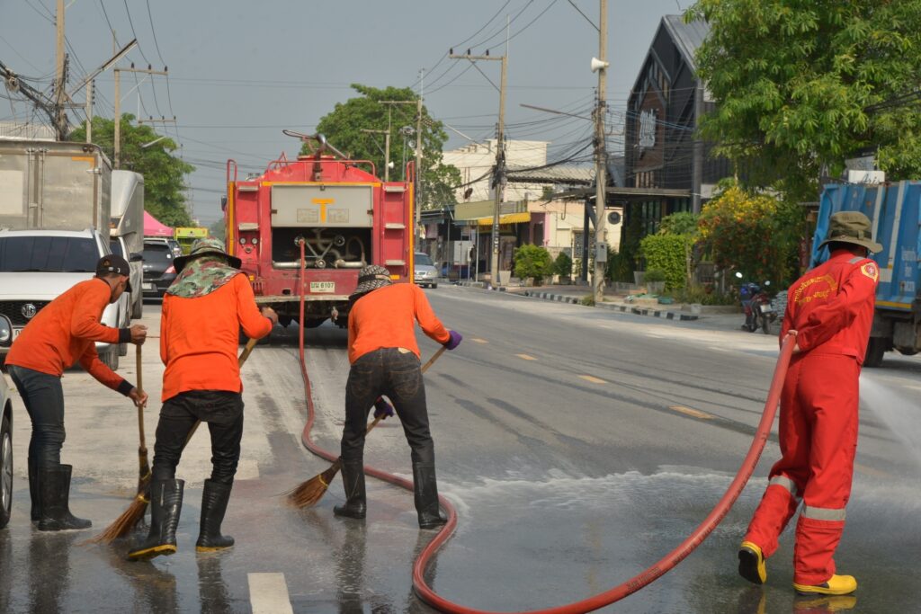 เมื่อวันที่ ๒๐ เมษายน ๒๕๖๖ นายจำเริญ สละชีพ นายกเทศมนตรีเมืองลพบุรี มอบให้ นายอนุสรณ์ อัศวสงคราม รองนายกเทศมนตรีเมืองลพบุรี นำเจ้าหน้าที่จากกองสาธารณสุขและสิ่งแวดล้อม และงานป้องกันบรรเทาสาธารณภัยเทศบาลเมืองลพบุรี ออกฉีดล้างถนนฟุตบาททางเท้า ทำความสะอาดถนนรามเดโช (สาย ๒) หลังเทศกาลสงกรานต์ประจำปี ๒๕๖๖ และตามโครงการวันเทศบาล ๒๕๖๖ เพื่อกิจกรรมบำเพ็ญสาธารณประโยชน์พัฒนาชุมชนระหว่างวันที่ ๑๘ – ๒๑ เมษายน ๒๕๖๖ ตามนโยบายของ นายจำเริญ สละชีพ นายกเทศมนตรีเมืองลพบุรี ที่จะพัฒนาทำความสะอาด ปรับปรุงภูมิทัศน์และสิ่งแวดล้อม พัฒนาเมืองให้มีความเจริญก้าวหน้า มีความเป็นอยู่ที่ดี มีการพัฒนาอย่างต่อเนื่อง