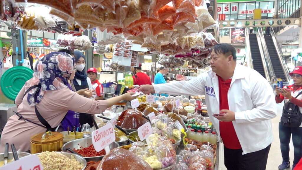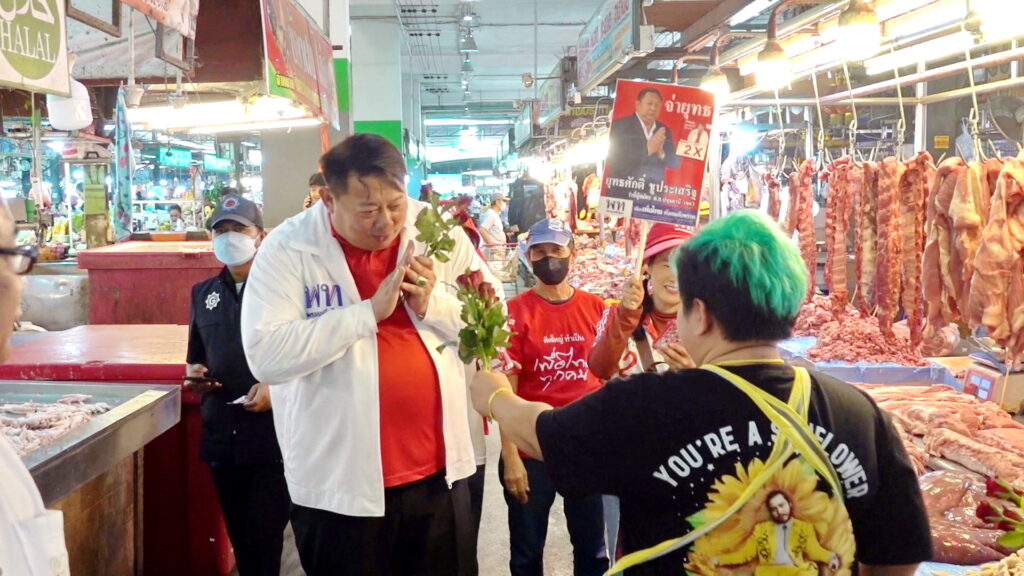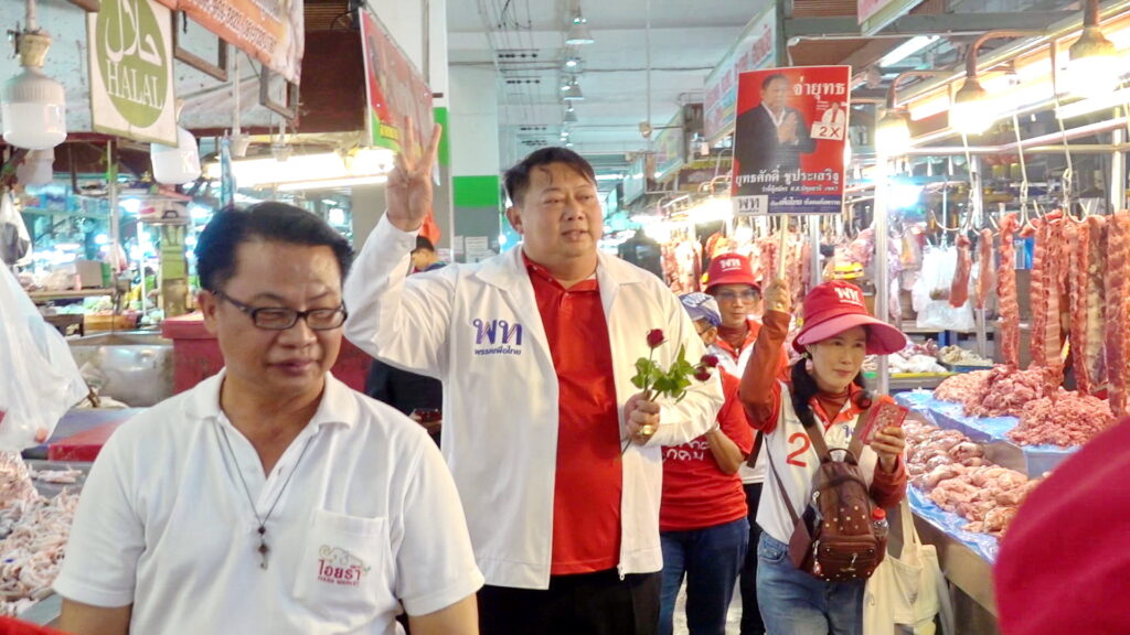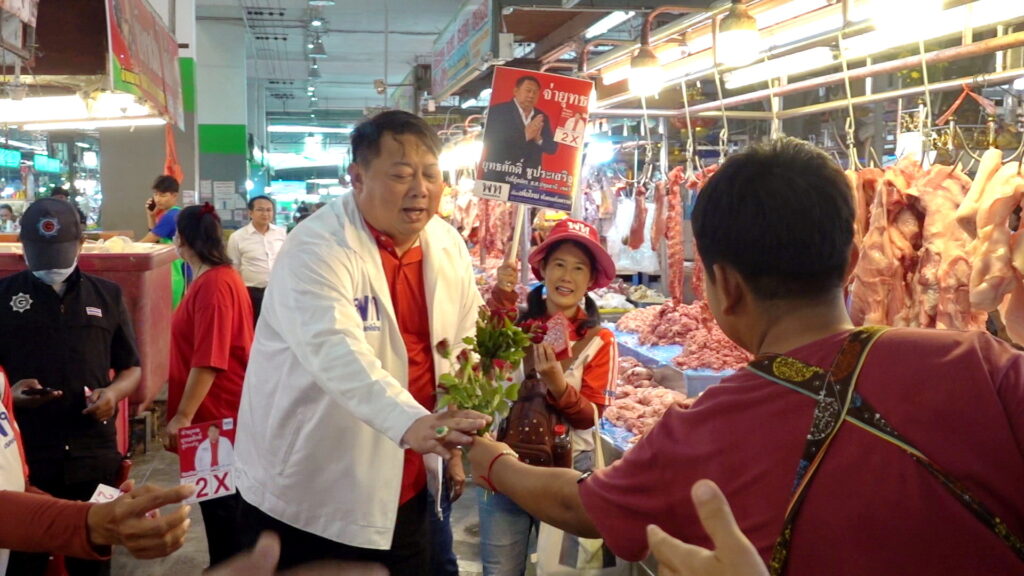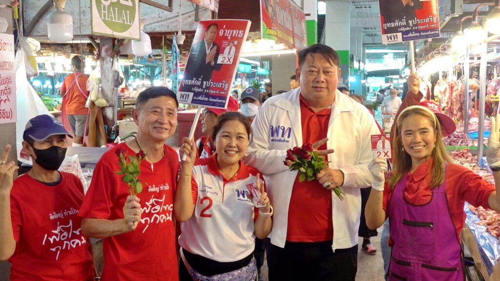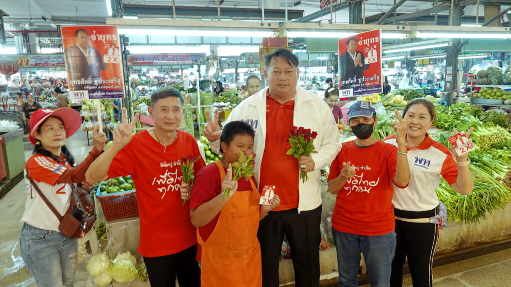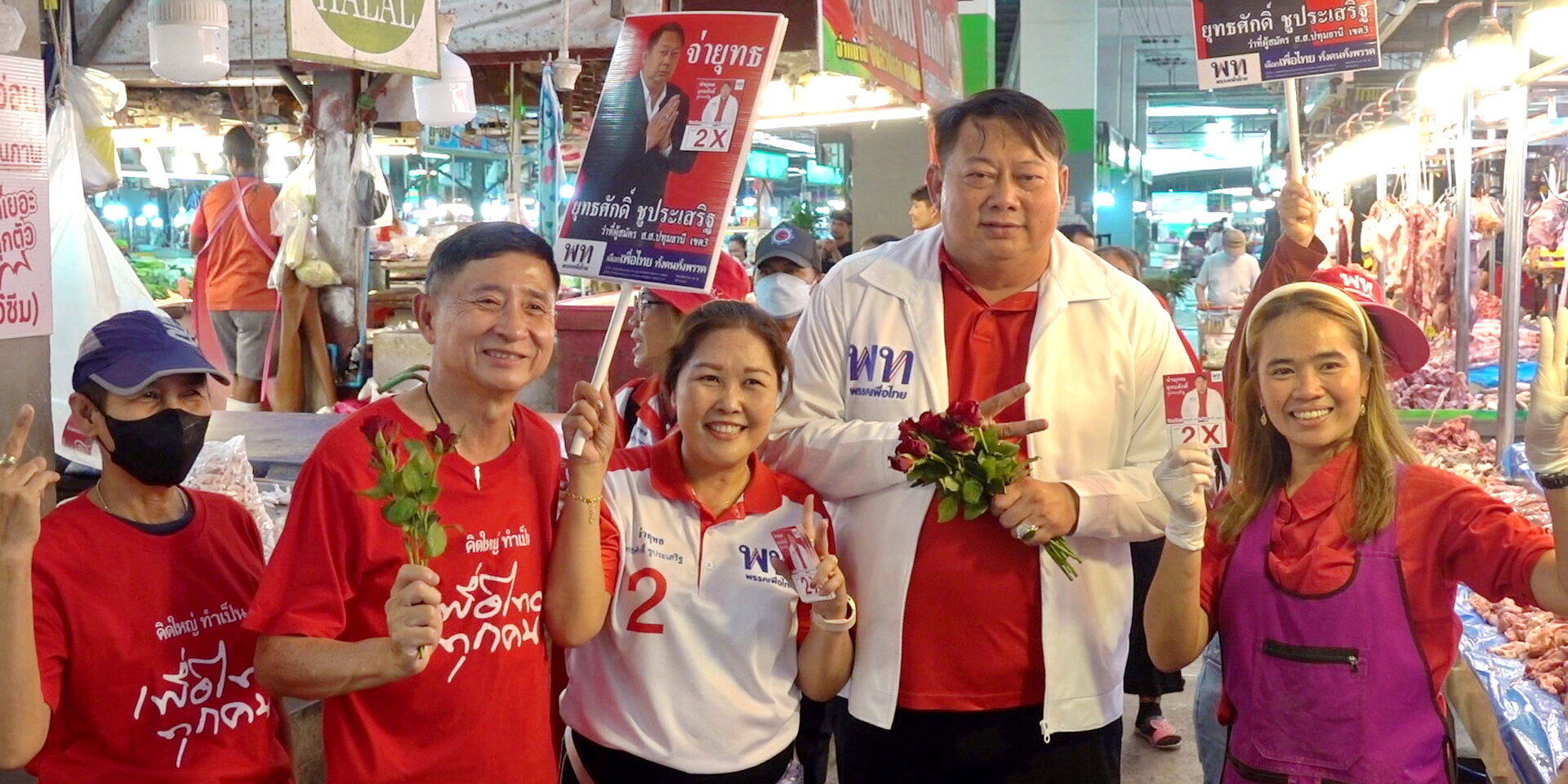 เมื่อเวลา 15.00 น. วันที่ 21 เมษายน 2566 ที่ตลาดสดไอยรา ตำบลคลองสอง อำเภอคลองหลวง จังหวัดปทุมธานี จ่ายุทธ ยุทธศักดิ์ ชูประเสริฐ ผู้สมัคร เบอร์ 2 ส.ส.พรรคเพื่อไทย เขตเลือกตั้งที่ 3 จังหวัดปทุมธานี ได้ลงพื้นที่ตลาดสดไอยรา แจกใบปลิวชูนโยบายเด่น เพื่อขอคะแนนเสียงจากจากพี่น้องชาวคลองหลวง ชาวปทุมธานี ซึ่งการลงพื้นที่ครั้งนี้ได้มีทีมงานพรรคเพื่อไทยใส่เสื้อแดงมาช่วยกันขอคะแนนเสียงกันหลายคน และมีประชาชนที่ชื่นชอบพรรคเพื่อไทยนำดอกไม้มาให้กำลังใจจำนวนมาก