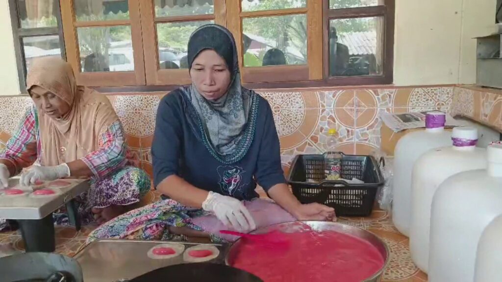 วันนี้ 21 เมษายน 2566 ชาวบ้านท่าแลหลา ต.กำแพง อ.ละงู จ.สตูล เป็นอีกหนึ่งกลุ่มที่อนุรักษ์ขนมดัวร์บุรี หรือที่ชาวบ้านเรียกอีกชื่อว่า “ขนมไส้แดง” ไว้เป็นของคู่เมืองสตูล โดยวันนี้ชาวบ้านท่าแลหลา กำลังช่วยกันทำขนมดัวร์บุรี เพื่อส่งให้ลูกค้าตามออเดอร์ และเตรียมขายในช่วงเย็นก่อนละศีลอดในเดือนรอมฎอน สร้างรายได้ให้ผู้ผลิตกว่า 2,000 บาทต่อวัน ขณะที่ส่วนผสมของขนมดัวร์บุรี แยกเป็นส่วนผสมของไส้ ประกอบด้วย แป้งข้าวเจ้า น้ำตาล กะทิ เกลือ น้ำนมแมวเพื่อให้ได้กลิ่นหอม และสีผสมอาหาร ซึ่งสามารถใช้สีอะไรก็ได้ตามชอบ แต่สูตรดั้งเดิมจะใช้สีแดง เมื่อได้ส่วนผสมแล้วก็นำทั้งหมดมากวนด้วยไฟกลาง ใช้เวลาประมาณ 1 ชั่วโมง เมื่อไส้สุกได้ที่แล้วนำมาพักให้เย็น