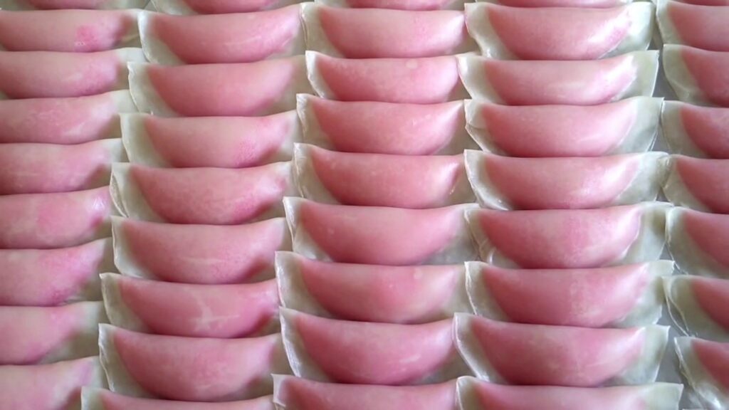 สำหรับส่วนผสมของแป้งห่อไส้จะใช้แป้งหมี่ ละลายด้วยน้ำเปล่า ไม่ข้นหรือเหลวจนเกินไป จากนั้นใช้จวักตักแป้งใส่กระทะที่ทาน้ำมัน ป้องกันแป้งติดกระทะ แล้วเกลี่ยให้เป็นแผ่นขนาดเท่ากันพอห่อขนมได้ จากนั้นยกลงมาห่อไส้สีแดงที่เตรียมไว้ พับเป็นครึ่งวงกลม เป็นอันเสร็จสิ้น จะได้ขนมดัวร์บุรี เนื้อแป้งนุ่มๆ หวานเล็กน้อย รสชาติกลมกล่อม