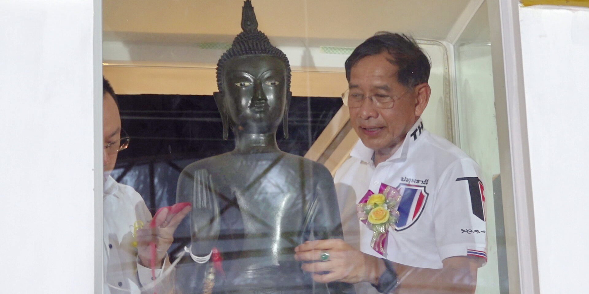 จากนั้นได้อันเชิญองค์พระมาประดิษฐานที่มูลนิธิมงคล-จงกลธูปกระจ่าง อ.สามโคก จ.ปทุมธานี แล้วรักษาคนไข้ที่เจ็บป่วยมาอธิฐานขอพรหลังจากการรักษา คนไข้ก็หาย นี่คือความเป็นมา ต่อมาผมมาลงสมัครนายก อบจ.ปทุมธานี ผมก็อธิฐานขอให้สมปรารถนา ในที่สุดก็ชนะมาอย่างท่วมท้น จนกระทั่งมาเจอกับท่านนายกวริศ เจริญกัลป์ นายกเทศมนตรีเทศบาลตำบลหนองเสือ โดยท่านมีเจตนาที่ดี เนื่องจากบริเวณหน้าที่ว่าการอำเภอหนองเสือมีศาลหลักเมืองอยู่แล้ว แต่ยังไม่มีพระพุทธรูปคู่บ้านคู่เมืองที่มีประวัติความเป็นมาที่เก่าแก่ ผมจึงยินดีมอบหลวงพ่อสมปรารถนาให้ เพราะหากเอาไว้ที่มูลนิธิฯก็ประทานพรให้ผมกับคนไข้ที่มารักษาเท่านั้น เมื่อนำมาประดิษฐานไว้ที่ว่าการอำเภอหนองเสือ พี่น้องชาวหนองเสือหรือประชาชนทั่วไปก็สามารถที่จะกราบไหว้สักการะบูชา ขอพร ให้ทุกสิ่งที่หวังสมปรารถนา.