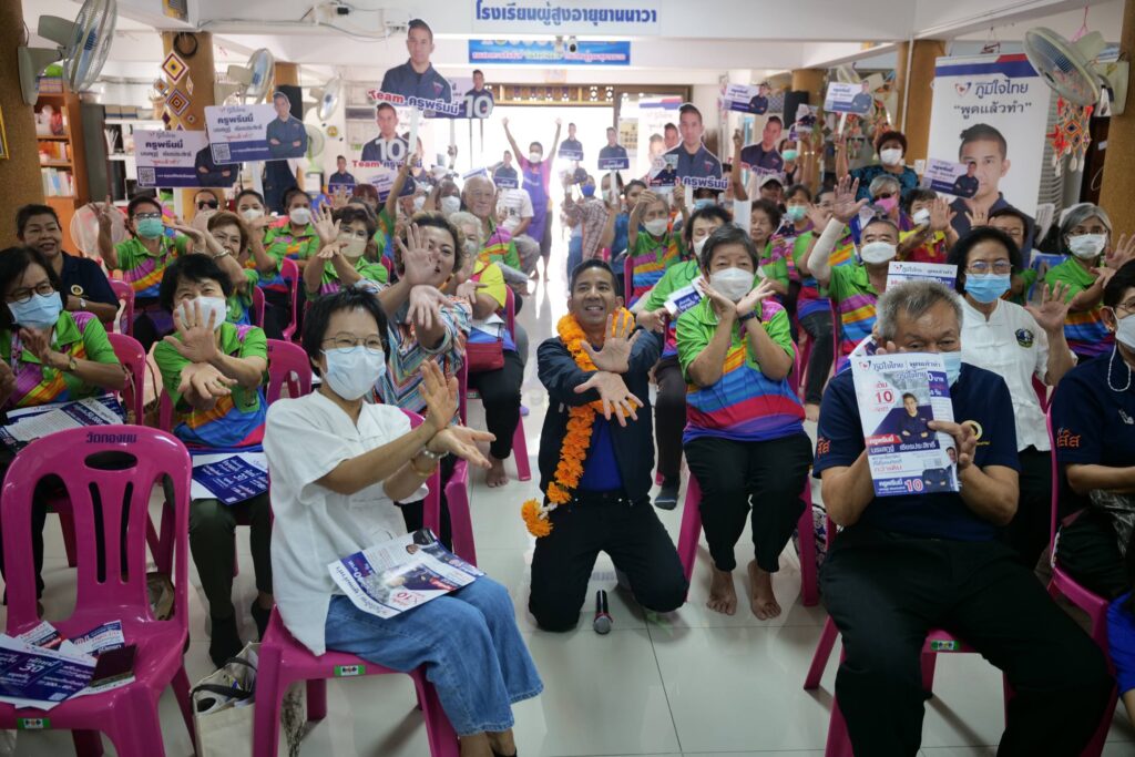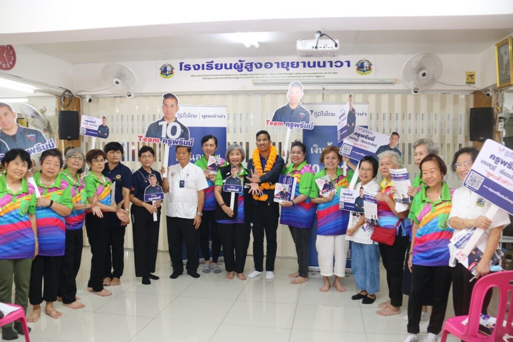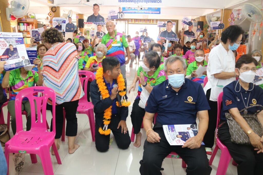 เมื่อวันที่ 21 เม.ย.66 ณ ห้องเรียนศาลาอเนกประสงค์ริมน้ำ วัดทองบน : นายนรเสฏฐ์ เธียรประสิทธิ์ หรือ ครูพรีมมี่ ผู้สมัคร ส.ส. เขต 3 ยานนาวา-บางคอแหลม เบอร์ 10 พรรคภูมิใจไทย ได้เข้าร่วมกิจกรรมจัดการเรียนการสอนกับกลุ่มนักเรียนผู้สูงวัย ในโรงเรียนผู้สูงอายุยานนาวา วัดทองบน ถนนพระราม 3 ซึ่งเป็นโรงเรียนที่รับรองโดย กศน. เขตยานนาวา ตามหลักสูตรการศึกษาตลอดชีวิต ครูพรีมมี่ ได้ใช้เวลาช่วงเว้นว่างจากกิจกรรมนันทนาการให้ห้องเรียนรู้ เพื่อขอโอกาสแนะนำตัวและนำเสนอนโยบาย อันเป็นที่ถูกใจชาวสูงวัยเขตยานนาวาอย่างมาก เพราะครูพรีมมี่ อาศัยความเป็น “ครู” สอนหนังสือมาก่อน จึงสามารถเรียกร้องความสนใจของผู้ใหญ่ในห้องเรียนได้ไม่ยาก โดยเฉพาะเมื่อได้รับไมค์มา ครูพรีมมี่ ก็เริ่มต้นด้วยประโยคที่คุ้นเคยทันที “หากพวกเรากำลังสบาย จงตบมือพลัน” ผู้สูงวัยทุกท่านก็พร้อมรับมุกโดยพร้อมเพรียง ตบมือเสียงดังๆ ตามด้วยเสียงหัวเราะด้วยความเป็นกันเอง ก่อนที่นายนรเสฎฐ์ฯ จะขอให้ทุกคนชูมือขึ้นทั้งสองข้างและถามไปว่า “ครูพรีมมี่เบอร์อะไร” แน่นอนว่า “เบอร์10″ ก็ดังประสานเสียงโดยพร้อมเพรียงอีกเช่นกัน