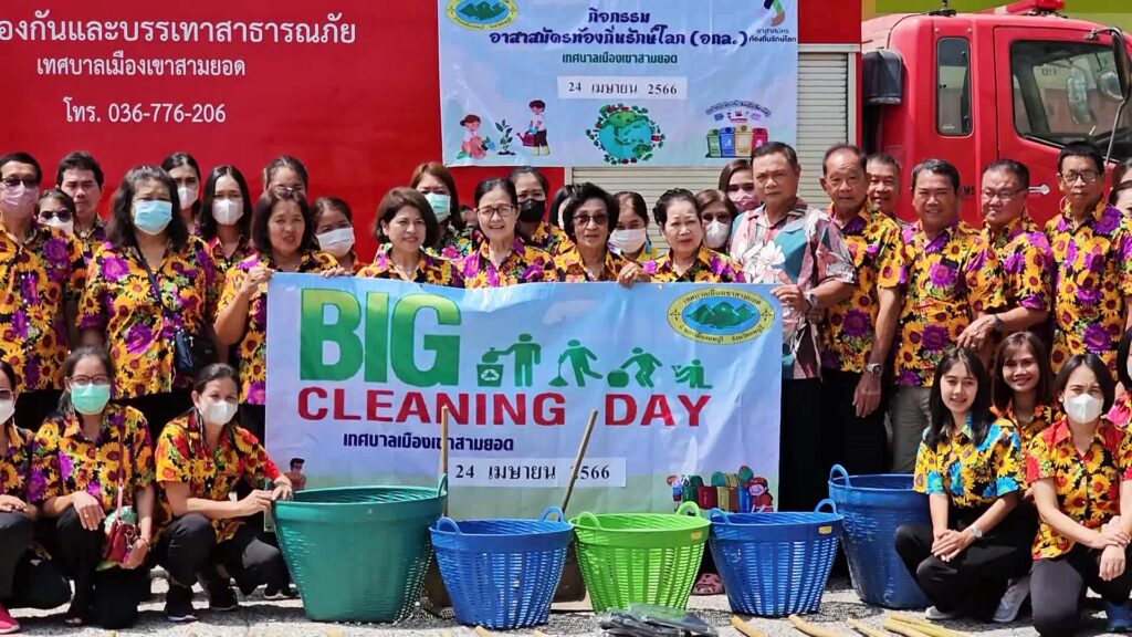 โอกาสเดียวกันนี้ นางสายใจ เลิศวิริยะประภา นายกเทศมนตรีเมืองเขาสามยอด ยังได้ นำจิตอาสาพระราชทาน เทศบาลเมืองเขาสามยอด เข้าร่วมกิจกรรม จิตอาสาพัฒนา บิ๊กคลีนนิ่งเดย์ (Big Cleaning Day) เนื่องในวันเทศบาล ประจำปี 2565 โดยร่วมกันบำเพ็ญสาธารณประโยชน์ เก็บกวาด ทำความสะอาด พื้นที่สาธารณะในเขตเทศบาลเมืองเขาสามยอด จังหวัดลพบุรี ด้วยการเก็บกวาด กำจัดขยะ ตัดหญ้า และตัดแต่งกิ่งไม้ เพื่อพัฒนาปรับภูมิทัศน์ให้เกิดความสวยงามสะอาดตา เพื่อสร้างจิตสำนึกในความมีจิตสาธารณ และบทบาทหน้าที่และความรับผิดชอบที่จะพัฒนาท้องถิ่นให้เจริญก้าวหน้า และเอื้ออำนวยประโยชน์ แก่ส่วนรวม รวมทั้งในการบำบัดทุกข์ บำรุงสุข และให้แก่ประชาชนในเขตเทศบาลเมืองเขาสามยอดให้เป็นเมืองน่าอยู่ และประชาชนมีส่วนร่วมในการจัดกิจกรรมร่วมกัน เพื่อสร้างความสามัคคี ความรัก ความผูกพัน ความเสียสละ และความรับผิดชอบในการที่จะร่วมกันพัฒนาท้องถิ่นของตนให้เจริญก้าวหน้าต่อไป