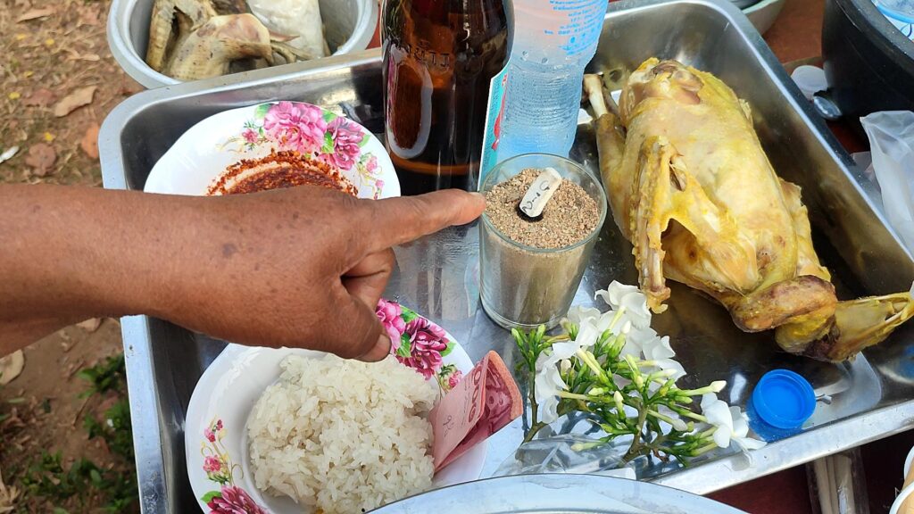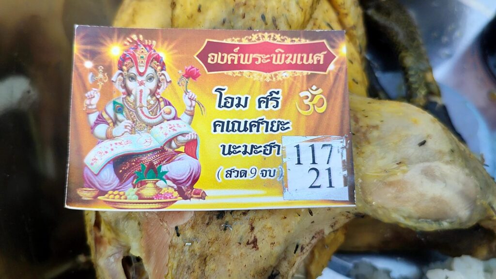 ขณะเดียวกัน ในระหว่างการประกอบพิธีอันศักดิ์สิทธิ์ บริเวณหน้าศาลพ่อปู่ ก็ได้มีการจุดธูปเสี่ยงทายวางไว้ตรงที่ชาวบ้านนำไก่มาไหว้ พร้อมนำแผ่นกระดาษเสี่ยงโชคมาวางไว้ แล้วตั้งจิตอธิษฐาน ขอพรพ่อปู่ ให้ดลบันดาลโชคลาภ แก่ผู้ที่มาร่วมงานในพิธี โดยธูปเสี่ยงทายในครั้งนี้ ได้ปรากฎตัวเลขให้เห็นอย่างชัดเจน ได้เลข 012 173 จากนั้นชาวบ้านนำกระดาษเสี่ยงโชคขึ้นมาโดยใช้เหรียญบาทค่อยๆขูด เห็นเป็นตัวเลขสีแดง076 67 บางแผ่นก็จะเห็นเป็น117 21 สร้างความฮือฮาแก่ผู้พบเห็นเป็นอย่างมาก ต่างพากันจดตัวเลข บางคนก็นำโทรศัพท์มือถือถ่ายรูป บางคนก็ซื้อลอตเตอรี่ตรงนั้นเลย และยังส่งต่อกันอย่างคึกคัก หวังนำเลขเด็ด ไปเสี่ยงดวง ตามความเชื่อกันต่อไป