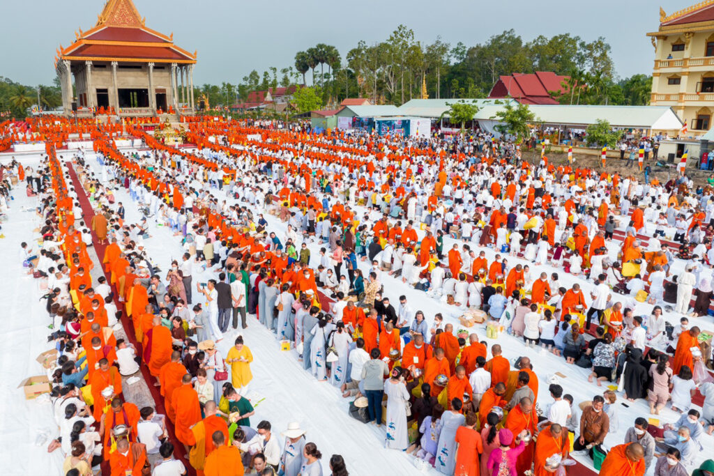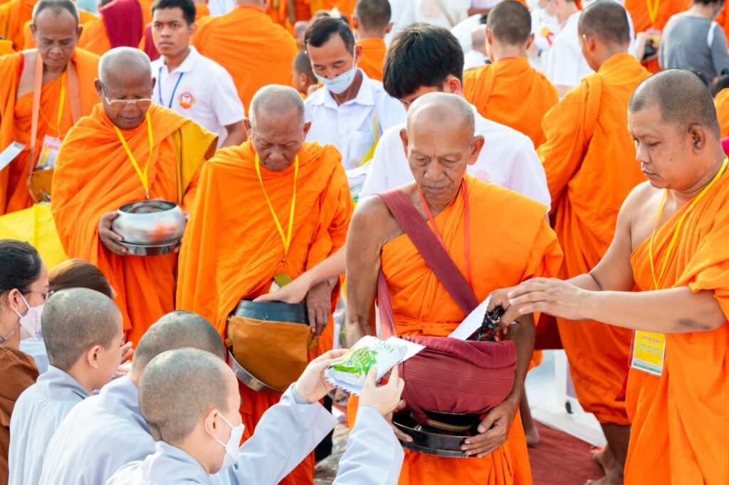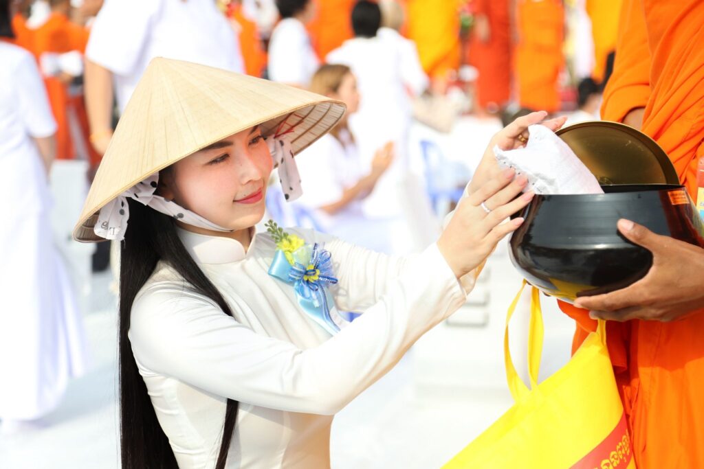 ภาพในพิธีมี พระอาจารย์ด่าวยือ มหาเถระ รองประธานมหาสังฆนายกแห่งสาธารณรัฐสังคมนิยมเวียดนาม เจ้าคณะจังหวัดเกิ่นเทอ อธิการบดีมหาวิทยาลัยสงฆ์เขมรเถรวาทจังหวัดเกิ่นเทอ เป็นประธานสงฆ์ในพิธีตักบาตรพระ 3,000 รูป สำหรับพุทธศาสนาในประเทศเวียดนามกำลังเติบโตและฟื้นฟูพระพุทธศาสนาขึ้นมาใหม่ ผู้คนจึงหันกลับมานับถือพระพุทธศาสนามากขึ้น ปัจจุบันมีพระภิกษุและภิกษุณีได้เดินทางมาประเทศไทยเพื่อศึกษาด้านพระพุทธศาสนาที่มหาวิทยาลัยมหาจุฬาลงกรณราชวิทยาลัย หลังจากจบการศึกษาแล้วได้นำความรู้ที่ศึกษาไปพัฒนากิจการคณะสงฆ์และพุทธศาสนาในประเทศเวียดนาม