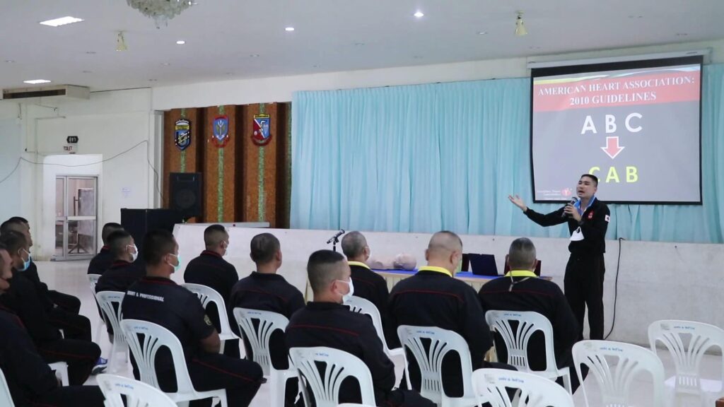สำหรับการอบรมในครั้งนี้ ผู้เข้ารับการอบรมจะได้รับความรู้วิธีการช่วยชีวิตขั้นพื้นฐาน การปฐมพยาบาลเพื่อช่วยเหลือผู้ประสบเหตุที่หยุดหายใจหรือหัวใจหยุดเต้นให้กลับมาหายใจ และมีการไหลเวียนออกซิเจนรวมทั้งเลือดกลับคืนสู่สภาพเดิม พร้อมทั้งป้องกันเนื้อเยื่อไม่ให้ได้รับอันตรายจากการขาดออกซิเจนอย่างถาวร โดยการกดหน้าอกและช่วยหายใจ รวมถึงการใช้เครื่องกระตุกหัวใจไฟฟ้าอัตโนมัติ ซึ่งเป็นอุปกรณ์อิเล็กทรอนิกส์แบบพกพาชนิดหนึ่ง ที่สามารถวินิจฉัยภาวะหัวใจเต้นผิดจังหวะที่เป็นอันตรายถึงชีวิตได้โดยอัตโนมัติ และสามารถให้การรักษาด้วยการช็อกไฟฟ้ากระตุกหัวใจ โดยใช้กระแสไฟฟ้าหยุดรูปแบบการเต้นของหัวใจที่ผิดจังหวะ เพื่อเปิดโอกาสให้หัวใจกลับมาเต้นใหม่ในจังหวะที่ถูกต้อง อีกด้วย