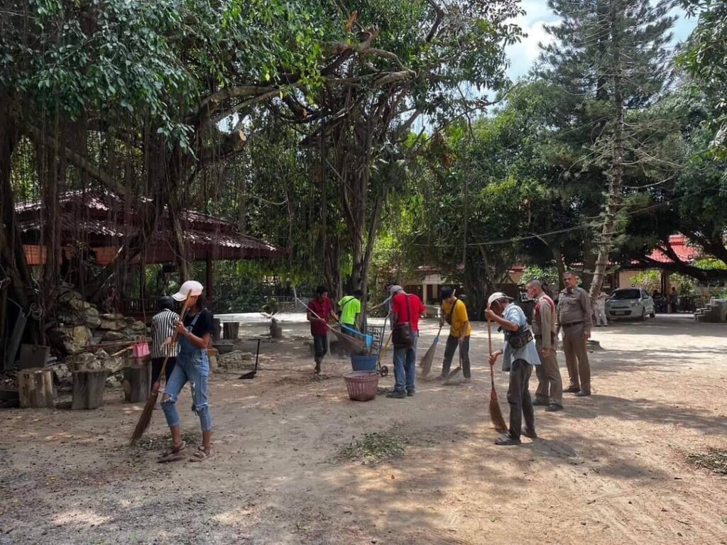 - ร่วมกันพัฒนาทำความสะอาดและตัดต้นไม้บริเวณวัดภูเขาทอง