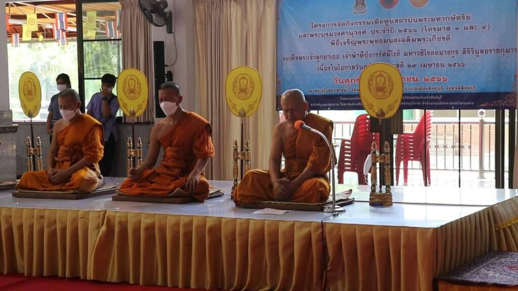 วันศุกร์ที่ 28 เมษายน พ.ศ.2566 เวลา 10.00 น.พระเทพปริยัติสุธี เป็นประธานสงฆ์และนายสุพจน์ ยศสิงห์คำ ผู้ว่าราชการจังหวัดสิงห์บุรี เป็นประธานฝ่ายฆราวาสพิธีเจริญพระพุทธมนต์เฉลิมพระเกียติสมเด็จพระเจ้าลูกเธอเจ้าฟ้า ทีปังกรรัศมีโชติ มหาวชิโรตตมางกูร สิริวิบูลยราชกุมาร เนื่องในโอกาสวัน คล้ายวันประสูติ 29 เมษายน 2566 ณ พระอุโบสถกลางน้ำ วัดพระนอนจักรสีห์ วรวิหาร โดยมี นายสัมฤทธิ์ กองเงิน พร้อมนายสมชาย ลีหล้าน้อย รองผู้ว่าราชการจังหวัดสิงห์บุรี ศาล ทหาร ตำรวจ เหล่ากาชาด หัวหน้าส่วนราชการ และประชาชน ร่วมพิธีฯเพื่อแสดงความจงรักภักดี และสำนึกในพระมหากรุณาธิคุณ ของสมเด็จพระเจ้าลูกยาเธอ เจ้าฟ้าทีปังกรรัศมีโชติ มหาวชิโรตตมางกูร สิริวิบูลยราชกุมาร ที่ทรงมีพระวิริยอุตสาหะ และพระราชปณิธานอันแน่วแน่ในการบำเพ็ญพระราชกรณียกิจด้วยพระราชหฤทัยเปี่ยมด้วยพระเมตตากรุณา เพื่อบำบัดทุกข์บำรุงสุขแก่อาณาประชาราษฎร์ ล้วนเป็นที่ประจักษ์อยู่ในดวงใจของพสกนิกรชาวไทยตลอดมา