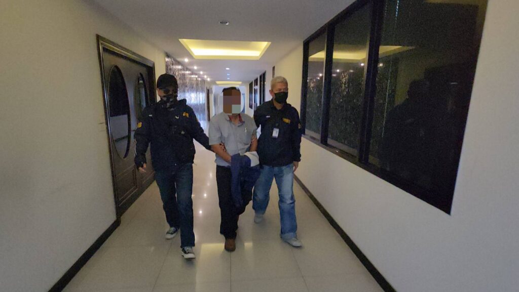 เมื่อวันที่ 26 เมษายน 2566 พล.ต.ท.ธิติ แสงสว่าง ผบช.น.,พล.ต.ต.นพศิลป์ พูลสวัสดิ์ รอง ผบช.น.,พล.ต.ต.ธีรเดช ธรรมสุธีร์ ผบก.สส.บช.น./ หน.PCT ชุดที่ 5 พ.ต.อ.วรพจน์ รุ่งกระจ่าง,พ.ต.อ.เกียรติศักดิ์ สระทองออย รอง ผบก สส.บช.น.,พ.ต.อ.จักราวุธ คล้ายนิล ผกก.วิเคราะห์ข่าวและเครื่องมือพิเศษ บก.สส.บช.น.,พ.ต.ท.ยิ่งยศ ลีชัยอนันต์,พ.ต.ท.พัชรพงษ์ กาญจนวัฎศรี รอง ผกก.วิเคราะห์ข่าวและเครื่องมือพิเศษ บก.สส.บช.น.,พ.ต.ท.สมพงษ์ เกตุระติ สว.กก.วิเคราะห์ข่าวและเครื่องมือพิเศษ บก.สส.บช.น. พร้อมกำลังเจ้าหน้าที่ตำรวจชุดปฏิบัติการที่ 5 กก.วิเคราะห์ข่าวและเครื่องมือพิเศษ บก.สส.บช.น. พร้อมชุด PCT5 ได้ร่วมกันสืบสวนติดตามจับกุมตัว