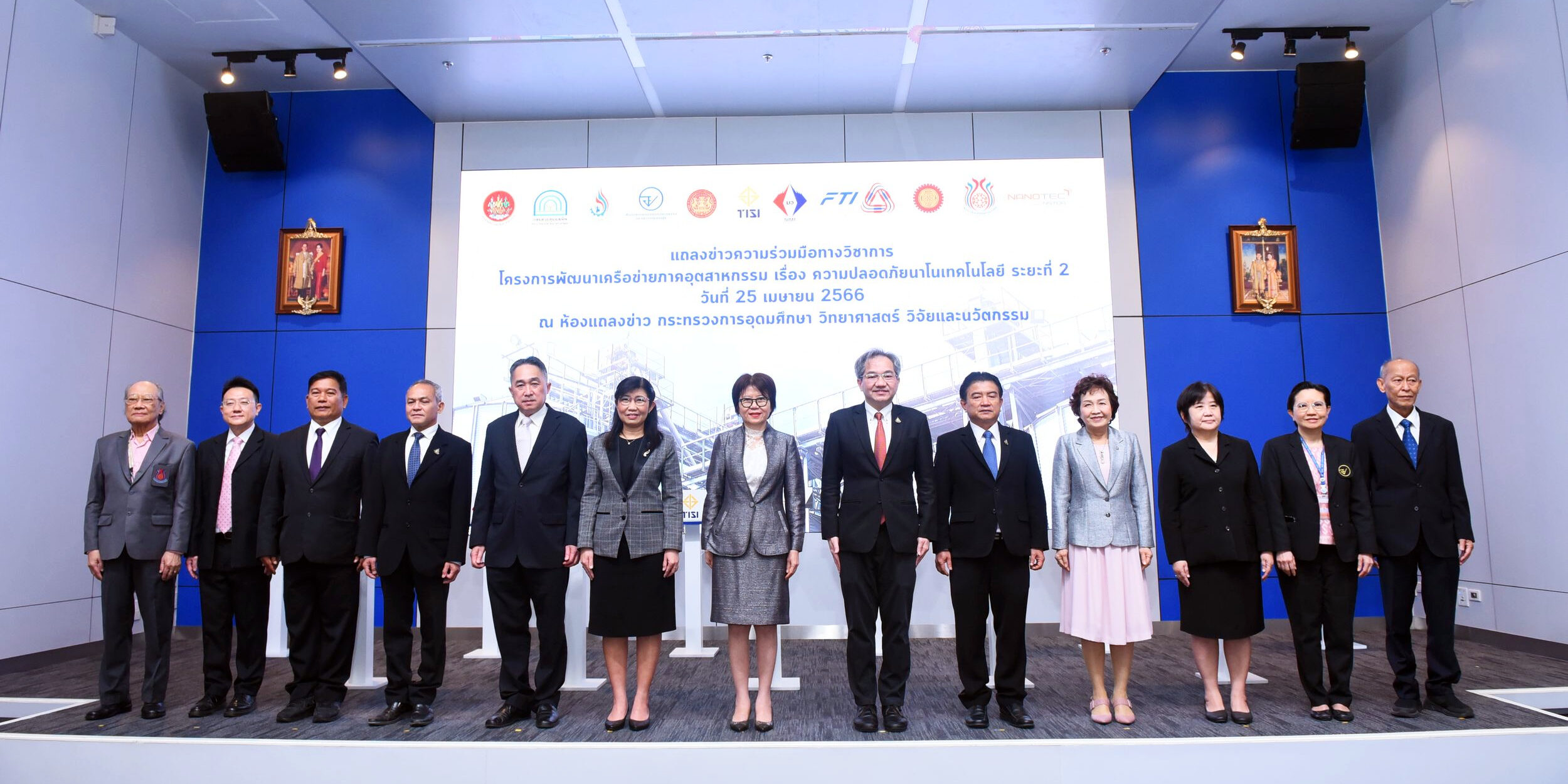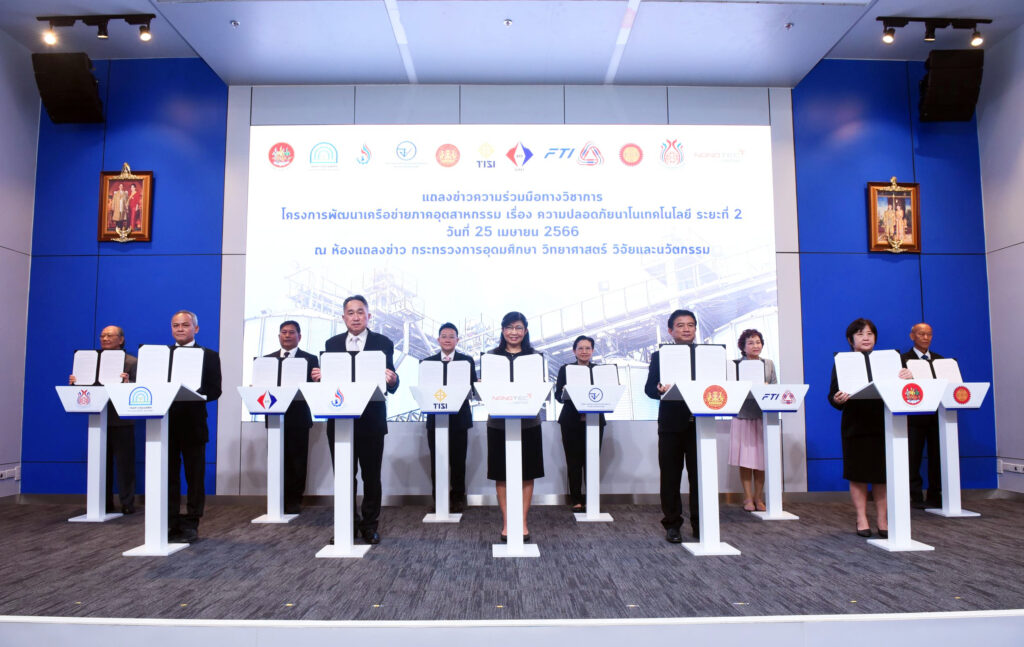 นาโนเทค (สวทช.) พร้อม 10 หน่วยงานพันธมิตร แถลงความร่วมมือทางวิชาการ โครงการพัฒนาเครือข่ายภาคอุตสาหกรรม เรื่อง ความปลอดภัยนาโนเทคโนโลยี ระยะที่ 2 ต่อยอดขยายการดำเนินการตามแผนยุทธศาสตร์ด้านความปลอดภัยและจริยธรรมนาโนเทคโนโลยี การสร้างความตระหนักต่างๆ พร้อมเดินหน้าหนุนหน่วยงานเครือข่ายภาคอุตสาหกรรมและภาครัฐ นำมาตรฐานผลิตภัณฑ์อุตสาหกรรมสาขานาโนเทคโนโลยี ไปใช้เป็นแนวทาง ตั้งเป้า 2 หน่วยงานต้นแบบในปี 68 หวังกระตุ้นให้เกิดการนำมาตรฐานผลิตภัณฑ์อุตสาหกรรมสาขานาโนเทคโนโลยี ไปใช้สร้างความเชื่อมั่นให้ผลิตภัณฑ์ไทยในตลาดโลก