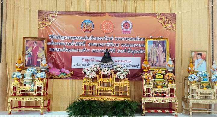 วันศุกร์ที่ 28 เมษายน 2566 เวลา 14.00 น. นายปรัชญา เปปะตัง รองผู้ว่าราชการจังหวัดลพบุรี เป็นประธานฝ่ายฆราวาส และมีพระครูสิริจริยาภรณ์ เจ้าคณะอำเภอเมืองลพบุรี เป็นประธานฝ่ายสงฆ์ ในพิธีเจริญพระพุทธมนต์เฉลิมพระเกียรติ พระบาทสมเด็จพระเจ้าอยู่หัว สมเด็จพระนางเจ้าสิริกิติ์ พระบรมราชินีนาถ พระบรมราชชนนีพันปีหลวง และสมเด็จพระนางเจ้าฯ พระบรมราชินี ประจำปีพุทธศักราช 2566 ครั้งที่ 3 ณ วัดตะลุง ตำบลตะลุง อำเภอเมืองลพบุรี จังหวัดลพบุรี