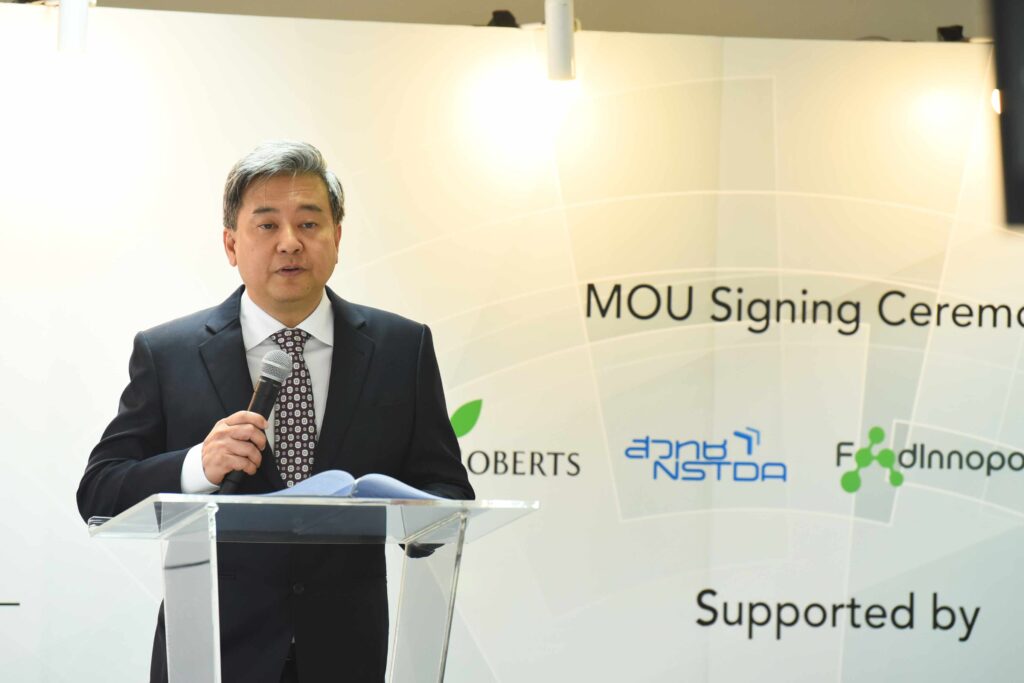 ด้านนายปีเตอร์ เค.ซี. ออง (Dr. Peter K.C. Ong) ซีอีโอ บริษัท เค เอช โรเบิร์ต จำกัด ประเทศสิงคโปร์ กล่าวว่า บริษัท เค เอช โรเบิร์ต จำกัด ซึ่งเป็นผู้นำด้านอุตสาหกรรมกลิ่นรสระดับโลก ได้พยายามพัฒนาเทคโนโลยีและนวัตกรรม รังสรรค์กลิ่นรสใหม่ๆ ออกมาอย่างต่อเนื่อง เพื่อตอบโจทย์ผู้ประกอบการอุตสาหกรรมอาหารในภูมิภาคเอเชียตะวันออกเฉียงใต้ จึงนำมาสู่การร่วมมือกับ Flavor Academy โดยเมืองนวัตกรรมอาหาร สวทช. เพื่อรองรับการขยายตัวของผู้ประกอบการอุตสาหกรรมอาหารในประเทศไทย ต่อยอดผลิตภัณฑ์ให้สามารถออกสู่ตลาดได้ มุ่งเน้นการวิจัยพัฒนา และสร้างสรรค์นวัตกรรมกลิ่นและรสชาติท้องถิ่น เพื่อสร้างมาตรฐานใหม่สำหรับนวัตกรรมและคุณภาพในอุตสาหกรรมเครื่องปรุง พร้อมทั้งเชื่อมโยงเครือข่ายการทำงานร่วมกับมหาวิทยาลัย และหน่วยงานภาครัฐในประเทศไทย