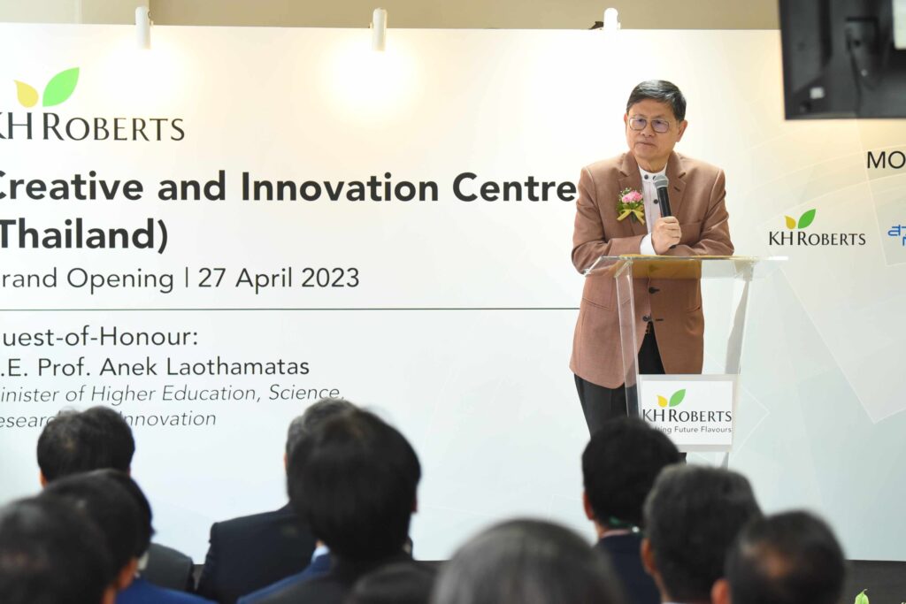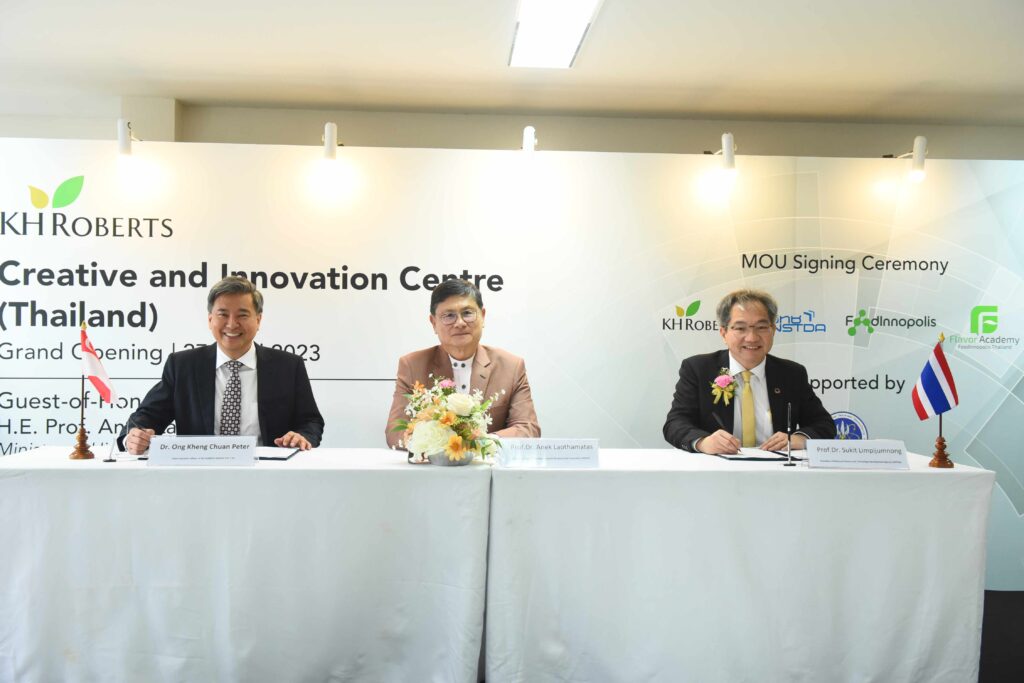 เมื่อวันที่ 27 เมษายน 2566 : สำนักงานพัฒนาวิทยาศาสตร์และเทคโนโลยีแห่งชาติ (สวทช.) โดยเมืองนวัตกรรมอาหาร แพลตฟอร์ม Flavor Academy ลงนามความร่วมมือกับบริษัท เค เอช โรเบิร์ต จำกัด ประเทศสิงคโปร์ เพื่อขยายขีดความสามารถด้านนวัตกรรมกลิ่นรสในประเทศไทย โดยได้รับเกียรติจาก ศาสตราจารย์(พิเศษ) ดร.เอนก เหล่าธรรมทัศน์ รัฐมนตรีว่าการกระทรวงการอุดมศึกษา วิทยาศาสตร์ วิจัยและนวัตกรรม เป็นประธาน โดยมี ศาสตราจารย์ ดร.ชูกิจ ลิมปิจำนงค์ ผู้อำนวยการสำนักงานพัฒนาวิทยาศาสตร์และเทคโนโลยีแห่งชาติ (สวทช.) และนายปีเตอร์ เค.ซี.ออง (Dr. Peter K.C. Ong) ซีอีโอ บริษัท เค เอช โรเบิร์ต จำกัด ประเทศสิงคโปร์ ร่วมลงนาม ณ ห้อง Creative and Innovation Center สถาบันค้นคว้าและพัฒนาผลิตผลทางการเกษตรและอุตสาหกรรมเกษตร มหาวิทยาลัยเกษตรศาสตร์ กรุงเทพฯ