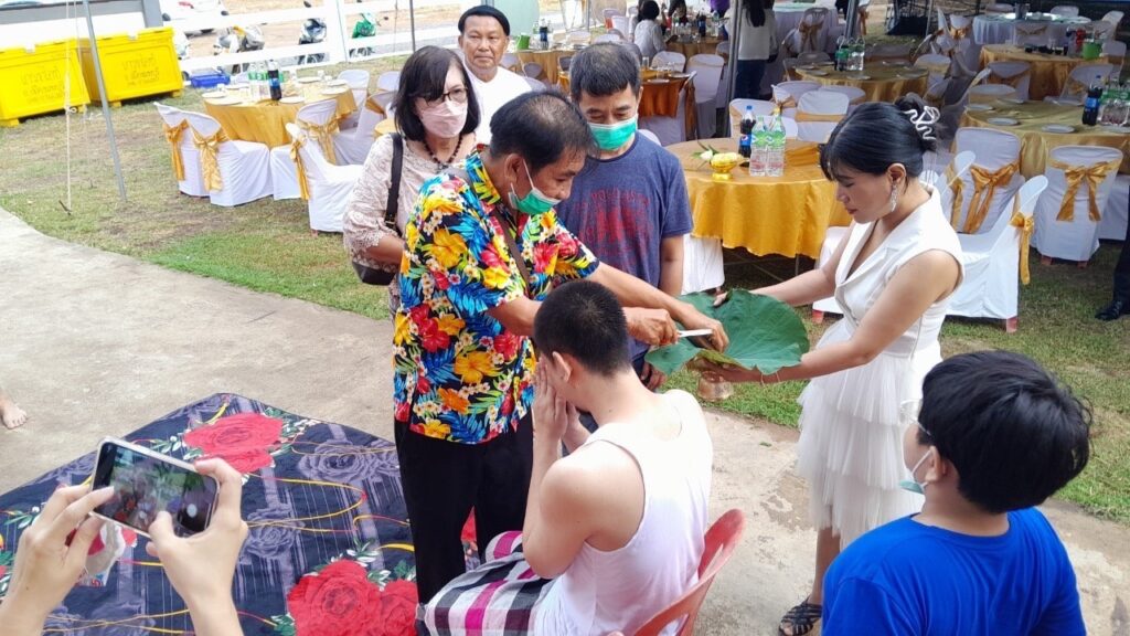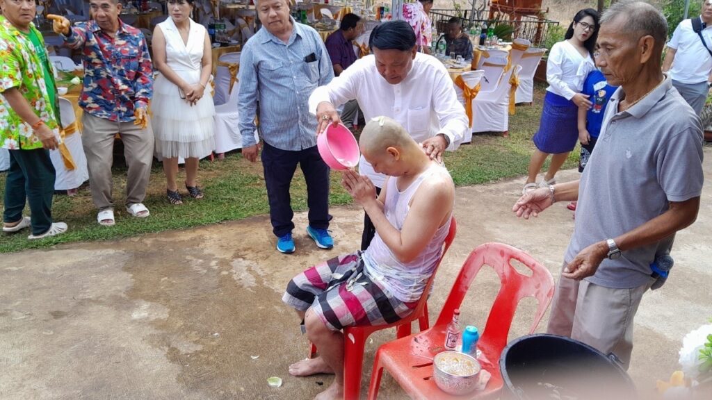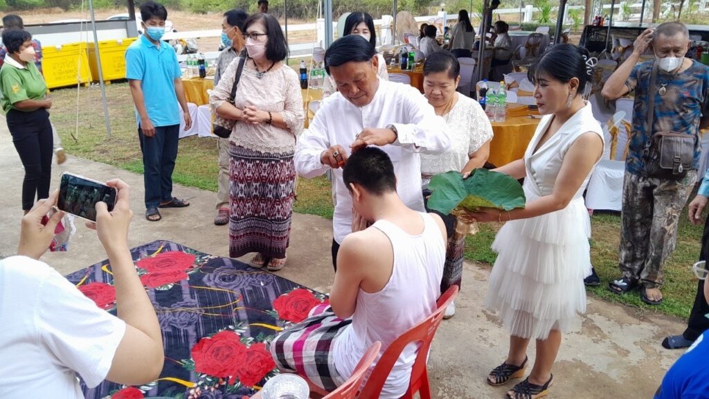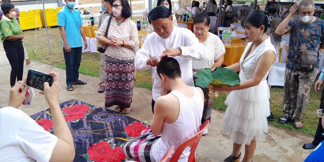 ร่วมงานพีธี อุปสมบท โกนผมนาค และงานเลี้ยง ฉลอง นาคปริญญา (มิคกี้) ญาณศุภวงศ์ โดยมี