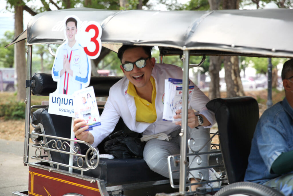 เมื่อวันที่ 30 เม.ย.66 ที่บริเวณศูนย์การค้า วัน นิมมาน เชียงใหม่ : น.ส.กชพร เวโรจน์ หรือ “มาดามหยก” ประธานที่ปรึกษาพรรค และหัวหน้าสาขาภาคเหนือจังหวัดเชียงใหม่ พรรครวมแผ่นดิน และนายพรชัย จิตรนวเสถียร ประธานยุทธศาสตร์พรรค พร้อมด้วยทีม Change Together ผู้สมัคร ส.ส.ทั้งระบบบัญชีรายชื่อและระบบเขต ร่วมกันนั่งรถตุ๊กตุ๊กและปล่อยขบวนรถแห่หาเสียงของผู้สมัคร ส.ส.เชียงใหม่ทั้ง 10 เขต เข้าร่วมกิจกรรมเสวนานโยบายพรรคการเมือง “The Choice เลือกตั้ง 2566 @CMU” ชูนโยบาย “เชียงใหม่ล้านนามหานคร” ที่หอประชุมมหาวิทยาลัยเชียงใหม่ มหาวิทยาลัยเชียงใหม่ โดยได้รับความสนใจจากประชาชนเป็นอย่างมาก