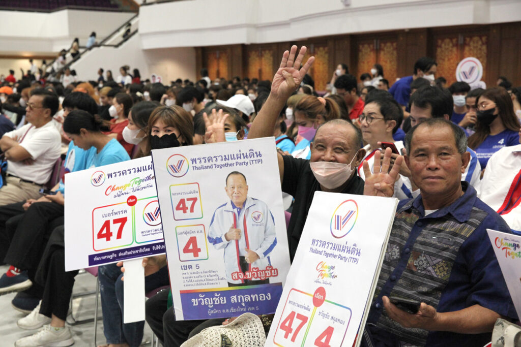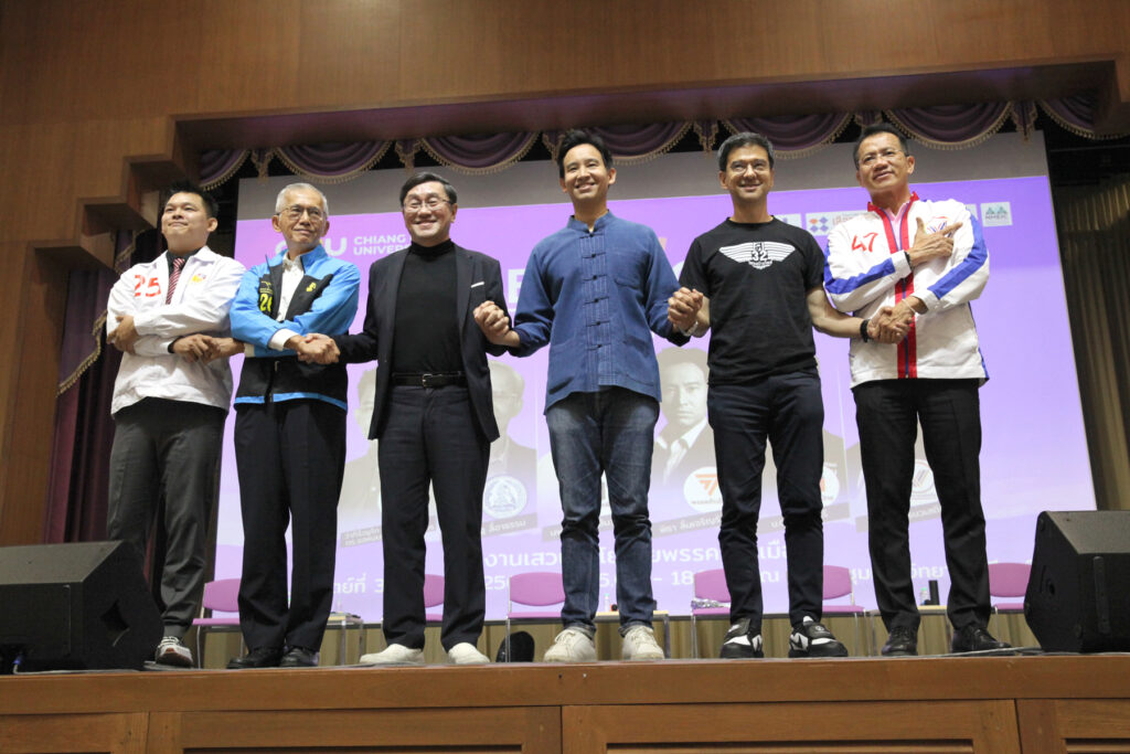 ที่หอประชุมมหาวิทยาลัยเชียงใหม่ มหาวิทยาลัยเชียงใหม่ ร่วมกับ คณะรัฐศาสตร์และรัฐประศาสนศาสตร์ และ ThaiPBS เปิดพื้นที่จัดกิจกรรมสร้างสรรค์ทางการเมือง จัดเวทีเสวนานโยบายพรรคการเมือง “The Choice เลือกตั้ง 2566 @CMU” พื้นที่สร้างสรรค์ทางการเมืองกับการเลือกตั้ง 2566 ในครั้งนี้มีนักศึกษา บุคลากร และประชาชน เข้าร่วมกิจกรรมเป็นจำนวนมาก พร้อมทั้งทีมกองเชียร์ของแต่ละพรรค โดยเฉพาะพรรครวมแผ่นดินก็ได้เรียกเสียงคะแนนจากประชาชนที่เข้าร่วมเป็นอย่างมาก และดารากลุ่ม Change Together เดินทางมาร่วมรับฟังการดีเบตในครั้งนี้ด้วย