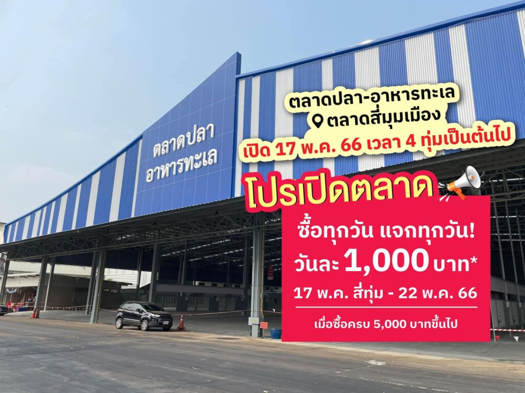 นางสาวปณาลี ภัทรประสิทธิ์ ผู้ช่วยกรรมการผู้จัดการตลาดสี่มุมเมือง กล่าวว่า ตลาดสี่มุมเมือง ตลาดค้าส่งผักผลไม้ของสดชั้นนำของเอเชีย ฉลองเปิดโซนใหม่อย่างยิ่งใหญ่ ตลาดปลา-อาหารทะเล อัดบิ๊กโปรโมชั่นดึงผู้ซื้อ รับเงินสด 1,000 บาททันทีแบบไม่ต้องลุ้น ซื้อทุกวันแจกทุกวัน เพียงซื้อสินค้าในตลาดปลา-อาหารทะเลครบ 5,000 บาท นำใบเสร็จมาแลกเงินสดได้ทันที ไม่จำกัดจำนวนต่อคนต่อครั้ง รวมบิลได้ ยิ่งซื้อเยอะยิ่งได้เยอะ เริ่ม 17-22 พฤษภาคม 2566 นี้ และโปรโมชั่นแรงต่อเนื่อง 23 พฤษภาคม – 4 มิถุนายน 2566 ตลาดสี่มุมเมือง จะทำการสุ่มแจกคูปองที่ตลาดสด ตลาดนัด กว่า 1,000 แห่ง ทั้งกรุงเทพฯ และจังหวัดใกล้เคียง ผู้ที่ได้รับคูปองเงินสด สามารถนำคูปองและใบเสร็จเมื่อซื้อสินค้าในตลาดปลา-อาหารทะเลครบ 5,000 บาท มาแลกเป็นเงินสดได้ทันที 1,000 บาท นอกจากนี้ ยังมีบริการเพิ่มเส้นทางรถขนส่งสินค้าตามจุดหลักของเส้นภาคตะวันออกเฉียงเหนือ อาทิ ตลาดเทิดไท ตลาดเซฟวัน อำเภอเมืองพล อำเภอบ้านไผ่ อำเภอบ้านแฮด และอำเภอเมืองขอนแก่น เพื่ออำนวยความสะดวกให้กับผู้ซื้อ