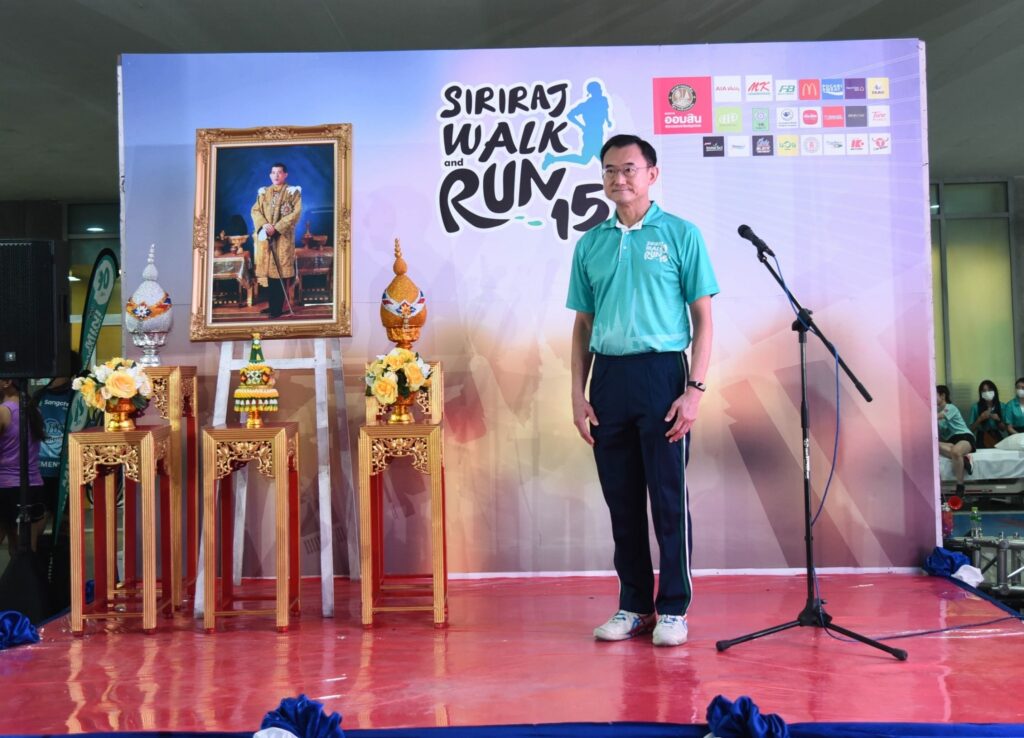 เมื่อวันที่ 30 เมษายน 2566 ศาสตราจารย์ นายแพทย์อภิชาติ อัศวมงคลกุล คณบดีคณะแพทยศาสตร์ศิริราชพยาบาล มหาวิทยาลัยมหิดล เป็นประธานเปิดงาน “ศิริราช เดิน-วิ่ง ครั้งที่ 15” โดยมี ผศ.นพ.ธีรวุฒิ ธรรมวิบูลย์ศรี รองคณบดีฝ่ายสร้างเสริมสุขภาพ คณะแพทยศาสตร์ศิริราชพยาบาล มหาวิทยาลัยมหิดล เป็นผู้กล่าวรายงานวัตถุประสงค์การจัดกิจกรรม และนายเอนก บำรุงกิจ รองผู้อำนวยการสำนักงานการวิจัยแห่งชาติ นำคณะผู้บริหาร ข้าราชการ และเจ้าหน้าที่ วช. ร่วมกิจกรรมดังกล่าว พร้อมนี้ ส่วนราชการและองค์กรต่าง ๆ ประชาชนและผู้สูงวัย ได้เข้าร่วมกิจกรรมกว่า 10,000 คน กิจกรรม “ศิริราช เดิน-วิ่ง ครั้งที่ 15” จัดรูปแบบกิจกรรมเป็น 3 ประเภท ได้แก่ ฮาล์ฟมาราธอน ระยะทาง 21.1 กิโลเมตร มินิมาราธอน ระยะทาง 10.5 กิโลเมตร และ ฟันรัน ระยะทาง 4 กิโลเมตร โดย วช. ในฐานะหน่วยงานหลักในการบริหารจัดการทุนวิจัยและนวัตกรรมของประเทศ ด้านการเตรียมรับสังคมสูงวัย มีเป้าหมายในการพัฒนาคุณภาพชีวิตของผู้สูงอายุ และเตรียมความพร้อมสำหรับกลุ่มผู้ที่มีอายุต่ำกว่า 60 ปี ที่จะเข้าสู่สังคมผู้สูงอายุในอนาคต ผ่านกิจกรรมเสริมสร้างสุขภาพให้กลุ่มผู้สูงอายุที่มีศักยภาพเป็นกลุ่ม Active ที่สามารถช่วยเหลือตัวเองได้เข้าร่วมกิจกรรม ศิริราช เดิน-วิ่ง ครั้งที่ 15 เพื่อเป็นการเตรียมความพร้อมของกลุ่มผู้ที่มีอายุต่ำกว่า 60 ปี (กลุ่มเยาวชน และกลุ่มบุคคลทั่วไป) เริ่มตั้งแต่ก่อนเข้าสู่วัยผู้สูงอายุอย่างมีคุณภาพ ทั้งด้านสุขภาพร่างกายและจิตใจ และพร้อมที่จะ “เปลี่ยนเกษียณเป็นพลัง” ต่อไป