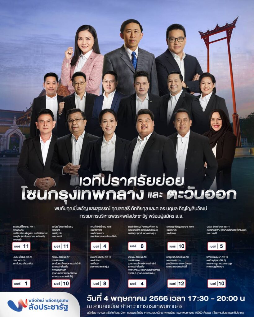 @@@ พรรคพลังประชารัฐ เปิดเวทีปราศรัยย่อย โซนกรุงเทพกลางและตะวันออก ณ ลานคนเมือง ศาลาว่าการกรุงเทพมหานคร โดยมี คุณมิ่งขวัญ แสงสุวรรณ์, ศ.ดร.นฤมล ภิญโญสินวัฒน์, คุณสกลธี ภัททิยกุล กรรมการบริหาร และหัวหน้าทีมผู้สมัคร ส.ส.กทม.พรรคพลังประชารัฐ พร้อมผู้สมัคร ส.ส. ได้แก่ ดร.สฤษดิ์ โพธทอง เขต 1 เบอร์ 11, พณิชย์ วิทยาภัทร์ เขต 2 เบอร์ 11, กานต์ กิตติอำพล เขต 5 เบอร์ ดร.ภักดีหาญส์ หิมะทองคำ เขต 13 เบอร์ 8, ร.อ.รชฎ พิศิษฐบรรณกร เขต 6 เบอร์ 10, นฤมล รัตนาภิบาล เบต 14 เบอร์ 5, บุญรุ่ง เต็งจงดี เขต 20 เบอร์ 1, ณิรินทร์ เงินยวง เขต 15 เบอร์ 8, พีระพงษ์ รัสมิ เขต 18 เบอร์ 4, กิติภูมิ นีละไพจิตร์ เขต 16 เบอร์ 12, นาถยา แดงบุหงา เขต 19 เบอร์ 10 เข้าร่วมการปราศรัยในครั้งนี้!!!