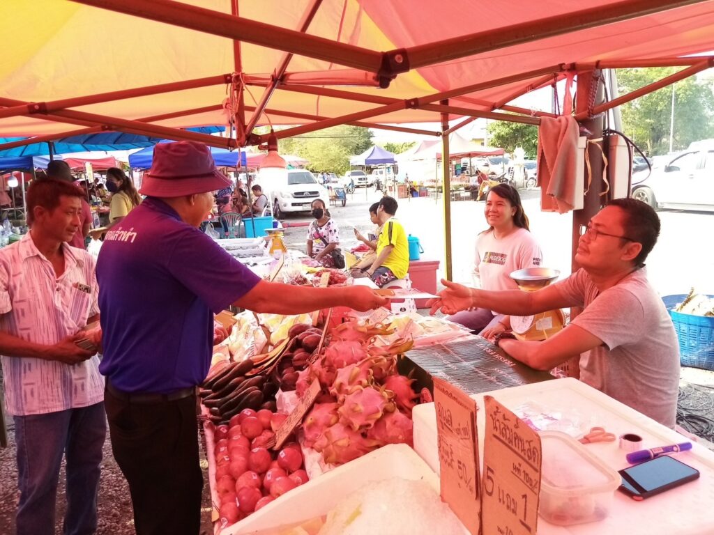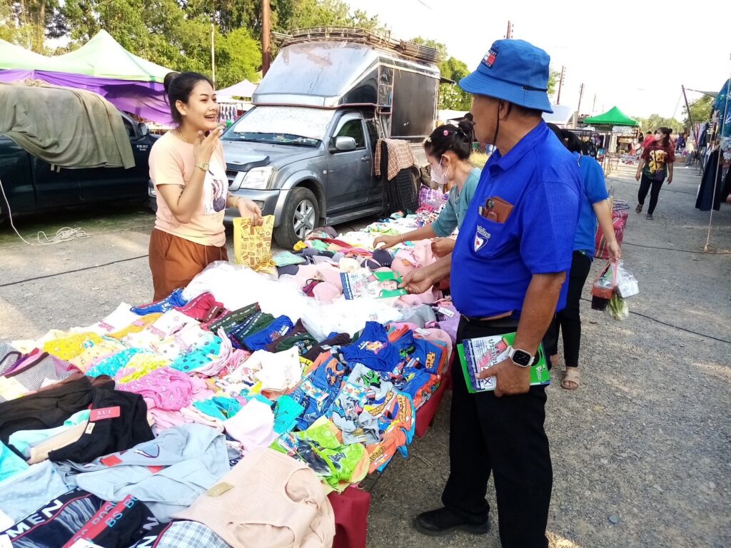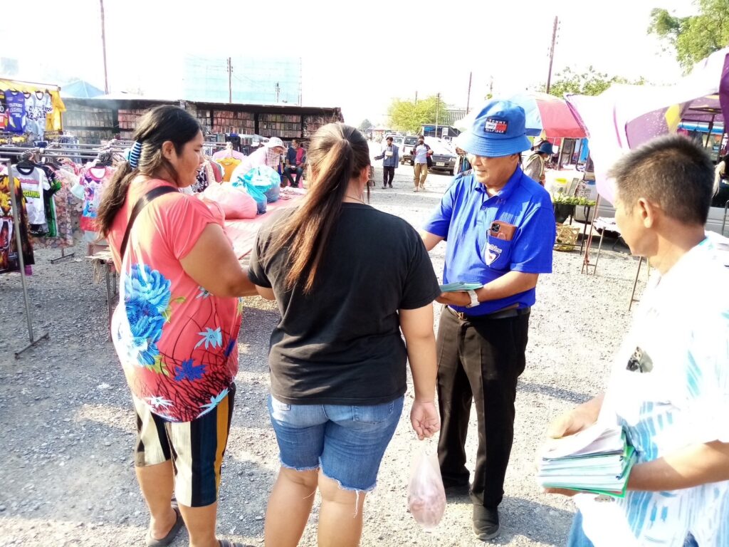 ลงพื้นที่ เดินตลาดนัด พบปะ แจกบัตรแนะนำตัว ผู้สมัคร ส.ส ให้กับ พ่อ แม่ พี่ น้อง ประชาชน
