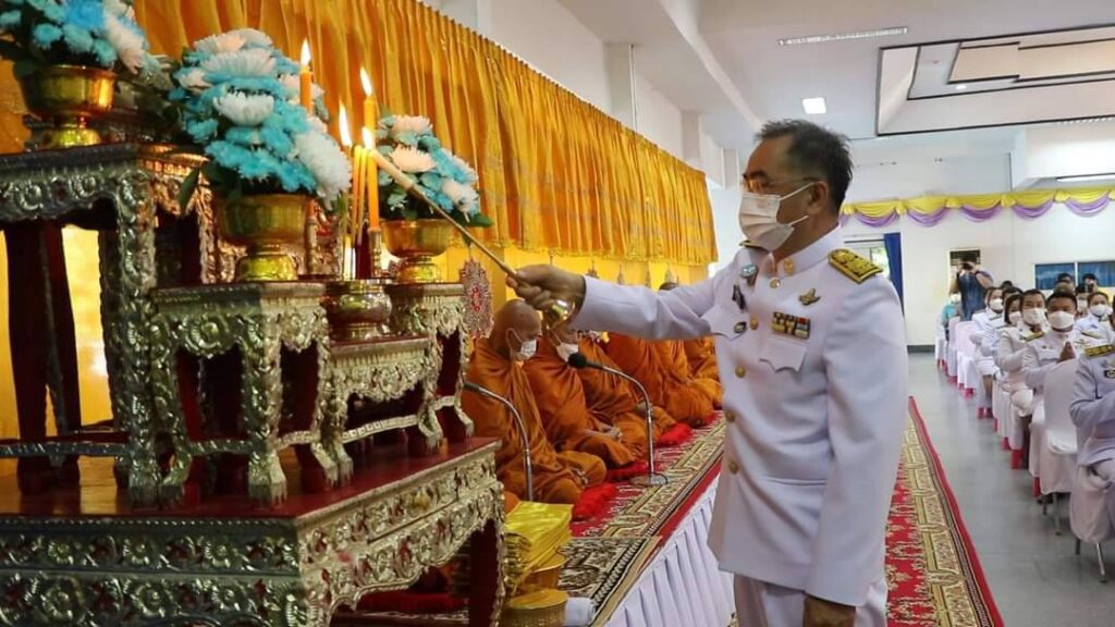 วันที่ 6 พฤษภาคม 2566 เวลา 7.30 น.นายสุพจน์ ยศสิงห์คำ ผู้ว่าราชการจังหวัดสิงห์บุรี พร้อมหัวหน้าศาล รองผู้ว่าราชการจังหวัดสิงห์บุรี เหล่ากาชาด ทหาร ตำรวจ หัวหน้าส่วนราชการ หน่วยงานรัฐวิสาหกิจ องค์กรปกครองส่วนท้องถิ่น ภาคเอกชน และประชาชนประกอบด้วยพิธีทำบุญตักบาตร และพิธีวางพานพุ่มดอกไม้ถวายราชสักการะ เพื่อเป็นการน้อมรำลึกในพระมหากรุณาธิคุณของสมเด็จพระเจ้าพี่นางเธอ เจ้าฟ้ากัลยาณิวัฒนา กรมหลวงนราธิวาสราชนครินทร์ ณ หอประชุมองค์การบริหารส่วนจังหวัดสิงห์บุรี โดยนายสุพจน์ ยศสิงห์คำ ผู้ว่าราชการจังหวัดสิงห์บุรี ประธานในพิธี ประกอบพิธีจุดธูปเทียนบูชาพระรัตนตรัย จุดธูปเทียนเครื่องทองน้อย หน้าพระรูปสมเด็จพระเจ้าพี่นางเธอ เจ้าฟ้ากัลยาณิวัฒนา กรมหลวงนราธิวาสราชนครินทร์ เจ้าหน้าที่อาราธนาศีล พระสงฆ์ให้ศีล เจ้าหน้าที่อาราธนาพระปริตร พระสงฆ์เจริญพระพุทธมนต์ จากนั้นประธานพิธีร่วมกับหัวหน้าส่วนราชการ ถวายเครื่องไทยธรรม ประธานในพิธีทอดผ้าไตรจำนวน 10 ไตร พระสงฆ์สดับปกรณ์ ประธานในพิธีกรวดน้ำ ประกอบพิธีทำบุญตักบาตร พระสงฆ์และสามเณร รับบิณฑบาต ณ ศาลากลางจังหวัดสิงห์บุรีหลังเดิม