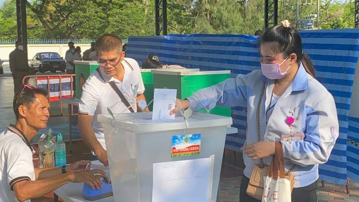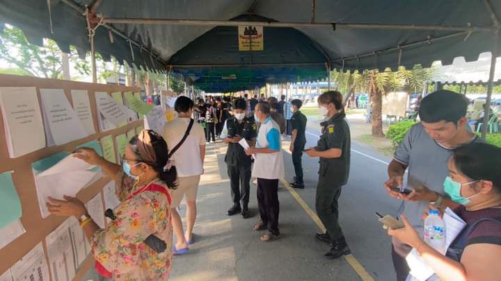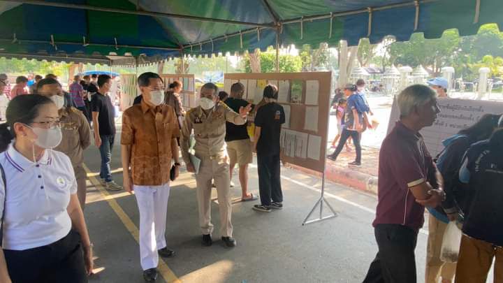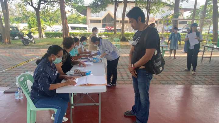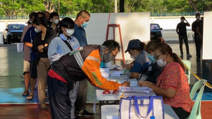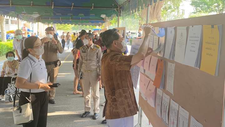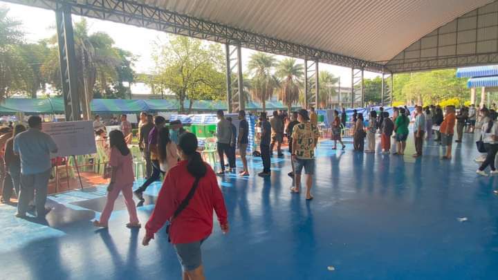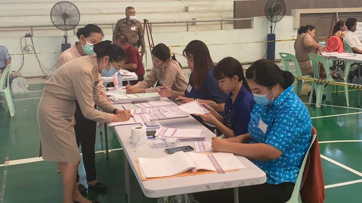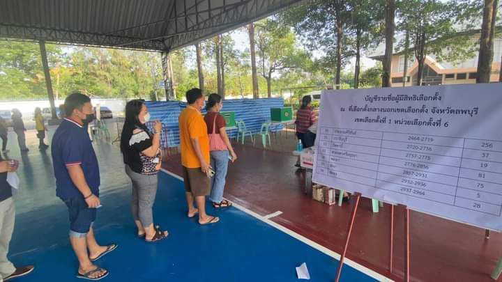 บรรยากาศการเปิดหีบเลือกตั้งล่วงหน้านอกเขตและในเขตเลือกตั้งสมาชิกสภาผู้แทนราษฏรของจังหวัดลพบุรี ประขาชนต่อแถวมาใช้สิทธิเนืองแน่น