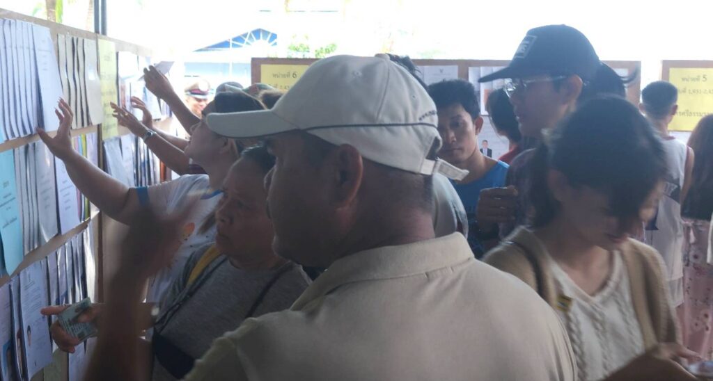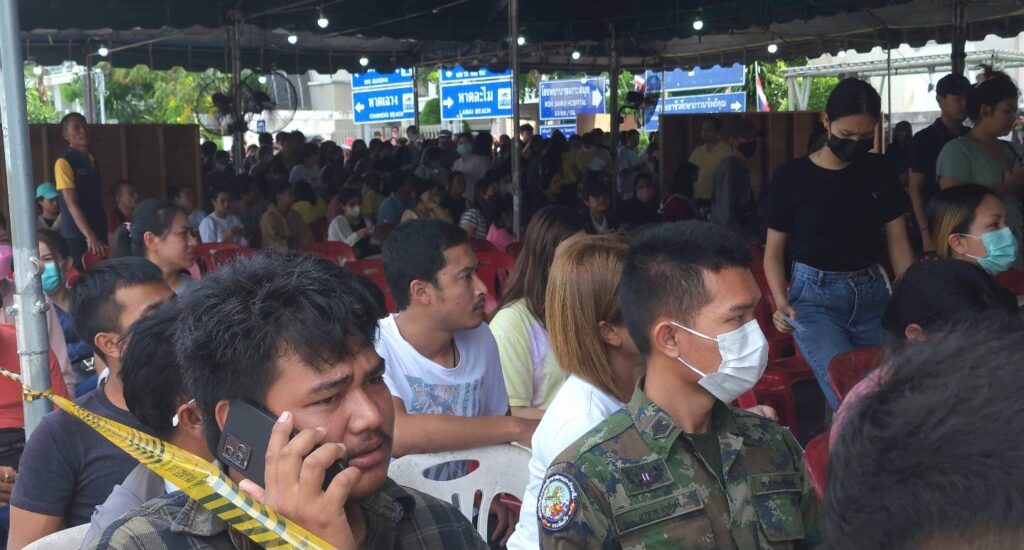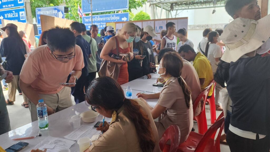 ได้มีพี่น้องประชาชนที่มาทำงานประกอบอาชีพทำธุระกิจในพื้นที่เกาะสมุยหลากหลายออกมาเข้าต่อแถวเข้าคิวใช้สิทธิ์การเลือกตั้งล่วงหน้ากันตั้งแต่เช้า ซึ่งส่วนมากจะเป็นผู้ใช้สิทธิ์จากนอกพื้นที่ๆมาประกอบอาชีพที่เกาะสมุยแต่มีชื่อเลือกตั้งในพื้นที่ภูมิลำเนาต่างจังหวัด
